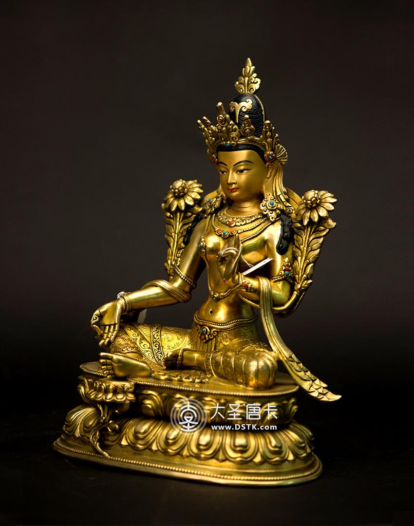 產地:尼泊爾佛像 工藝:鎏金 創作年份:2017 題材:佛母 繪制時間:0日 尺寸:33*15*18cm 重量:0 g 材質:紫銅 使用場地: