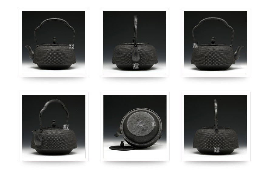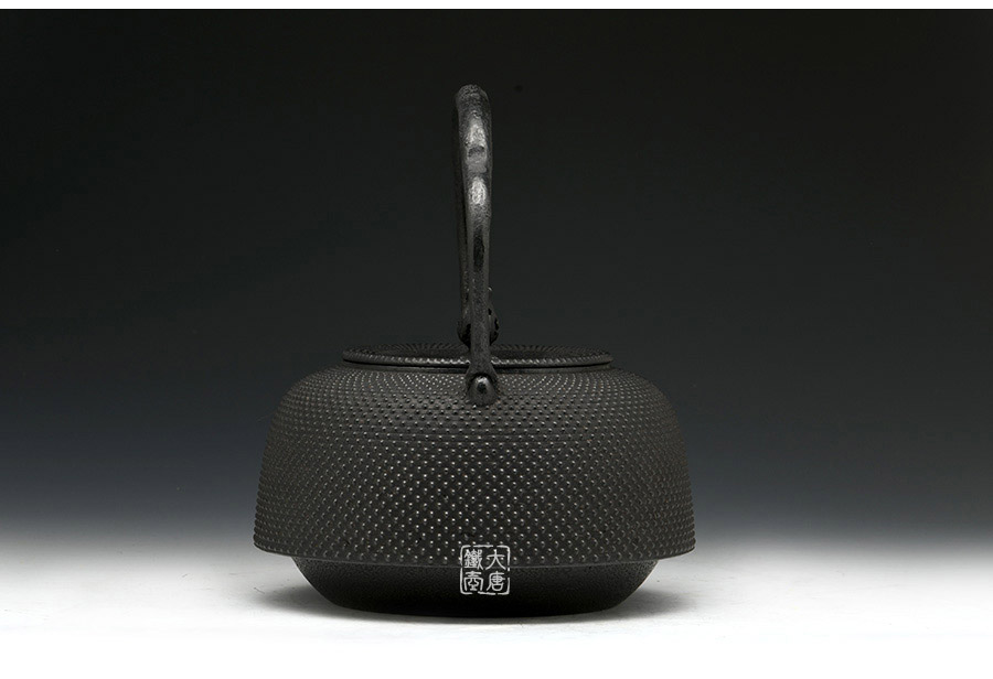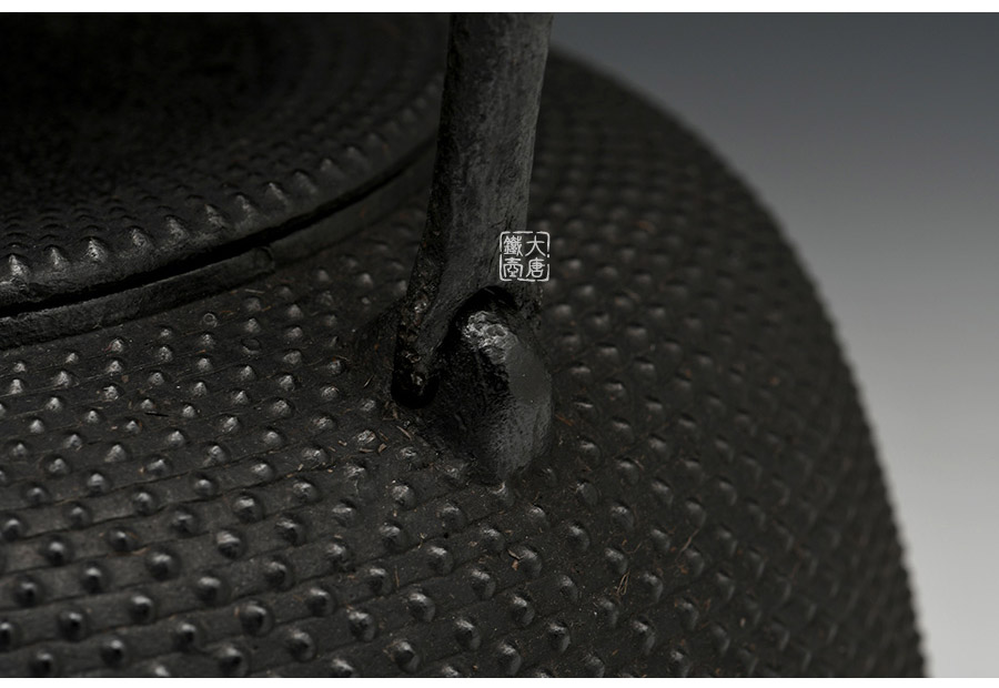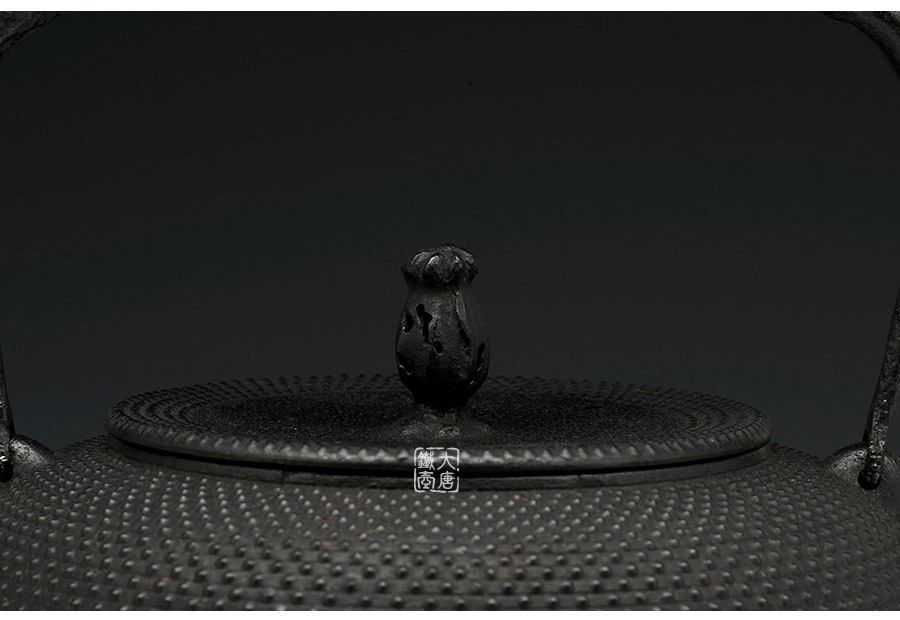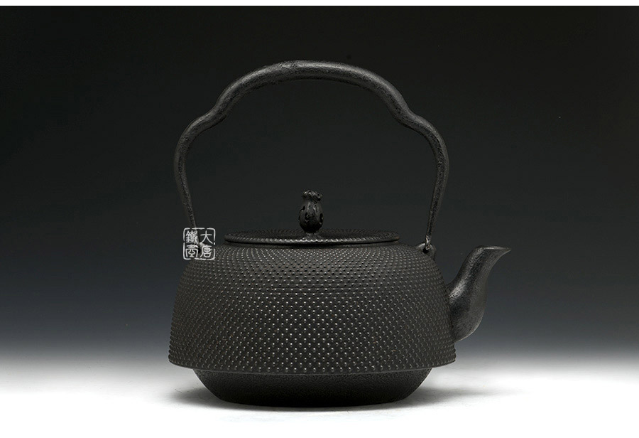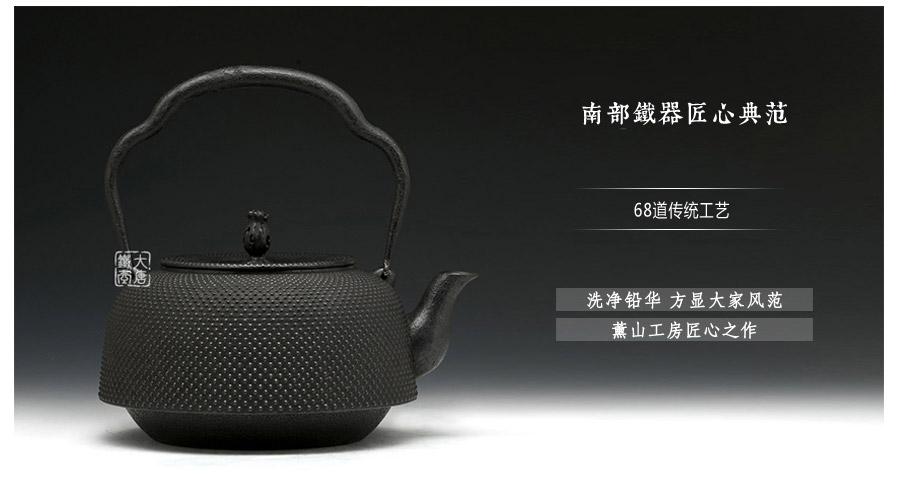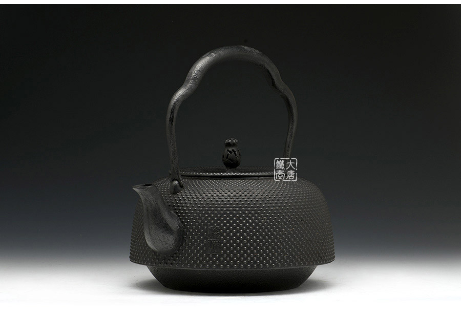 南部鐵器知名堂號薰山工房作品,傳統(tǒng)手工工藝,傳統(tǒng)九重型,經(jīng)典霰紋,搭配夾把式提梁,渾厚古樸,大方簡約。