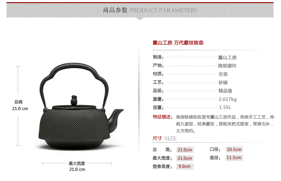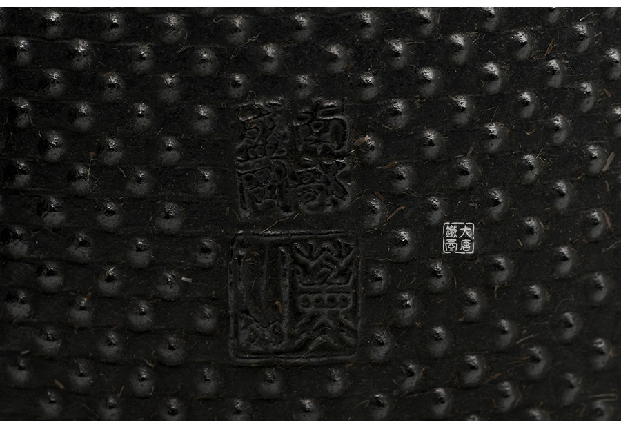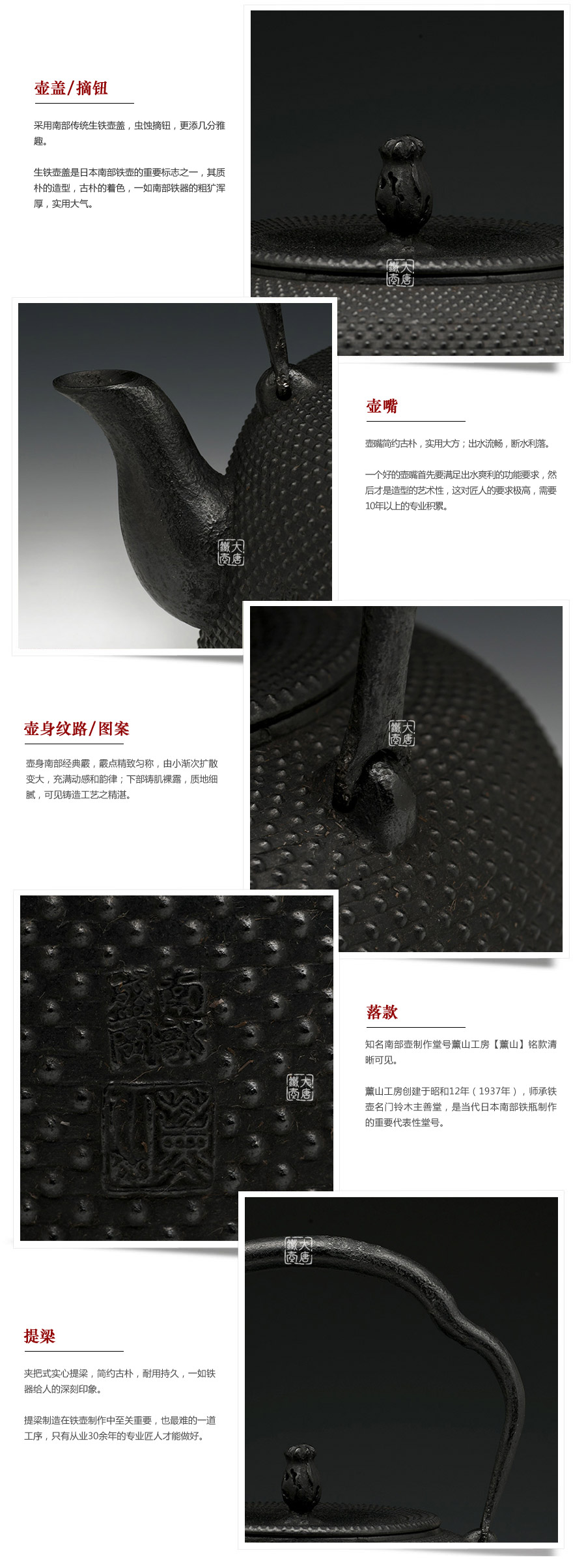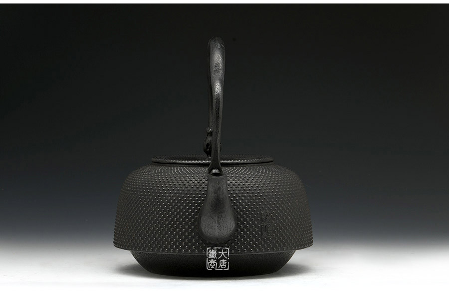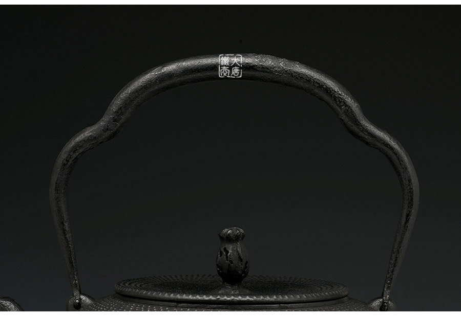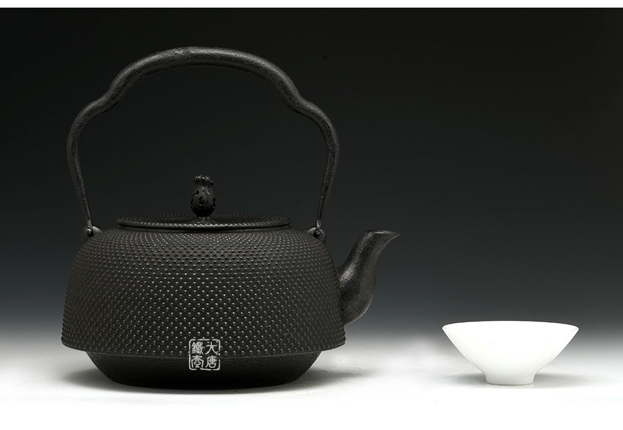 南部鐵器知名堂號薰山工房作品,傳統(tǒng)手工工藝,傳統(tǒng)九重型,經(jīng)典霰紋,搭配夾把式提梁,渾厚古樸,大方簡約。