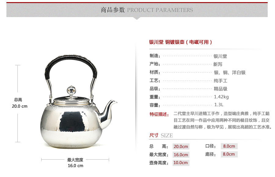 銀川堂 銅鍍銀壺(電磁可用) [ 編號(hào):63516 ]