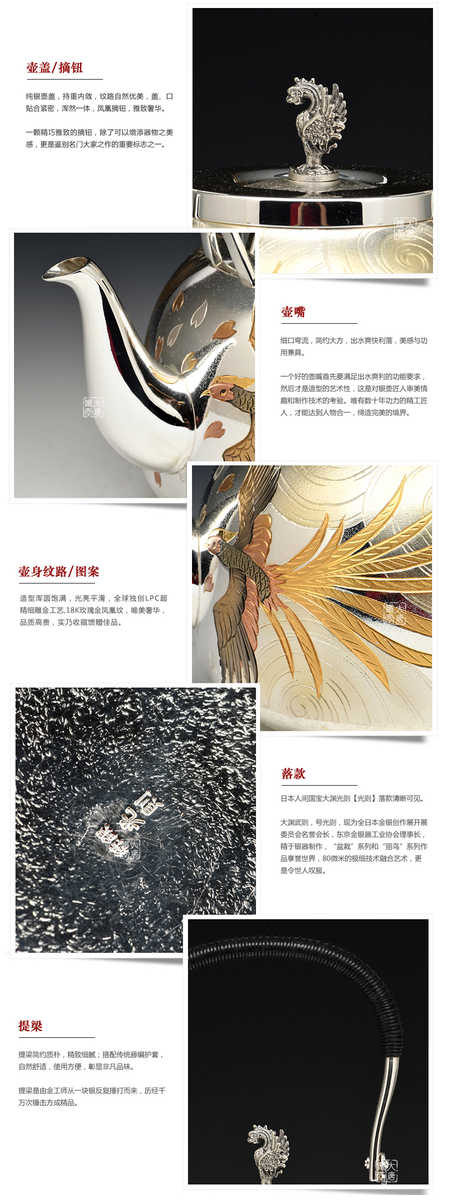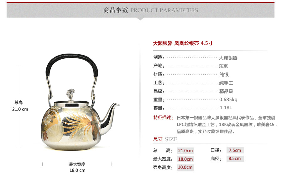 日本第一銀器品牌大淵銀器經(jīng)典代表作品,全球獨(dú)創(chuàng)LPC超精細(xì)雕金工藝,18k玫瑰金鳳凰紋,唯美奢華,品質(zhì)高貴,實(shí)乃收藏饋贈(zèng)佳品。