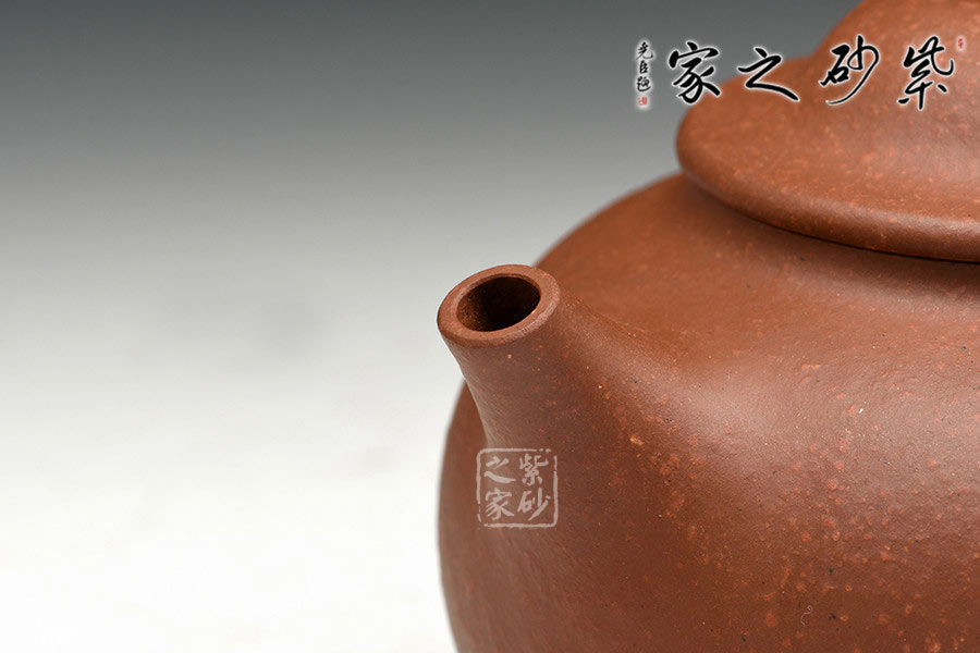 紫砂七老優(yōu)秀傳人蔣小彥手工之作,文人氣息較重的清水泥制作,色澤素雅,以調(diào)砂入壺,肌理更豐富。如此古樸的泥料與氣韻充沛的器型結(jié)合,更顯韻味。壺體略高,溜肩去底,口蓋子母線吻合緊密,珠鈕蘊力,直流出水利落斷水徹底,。整器簡潔大方,線條流暢,技精工美,收藏實用兼并。