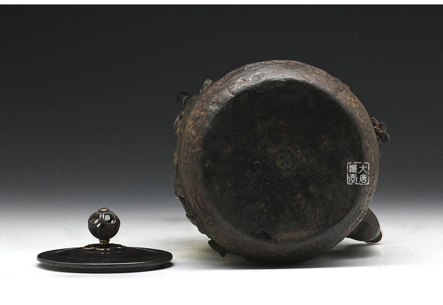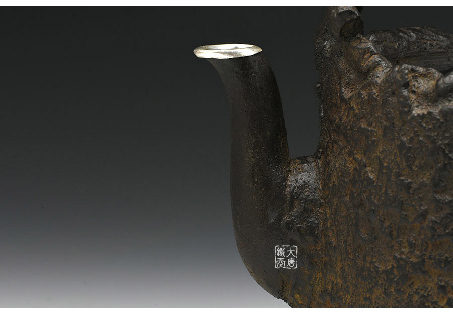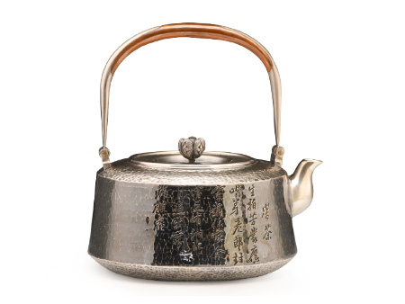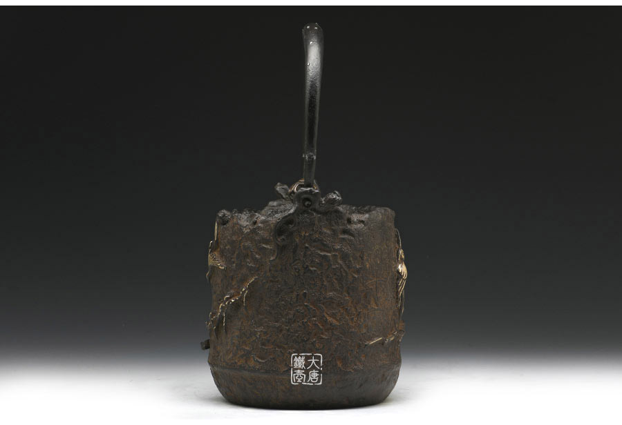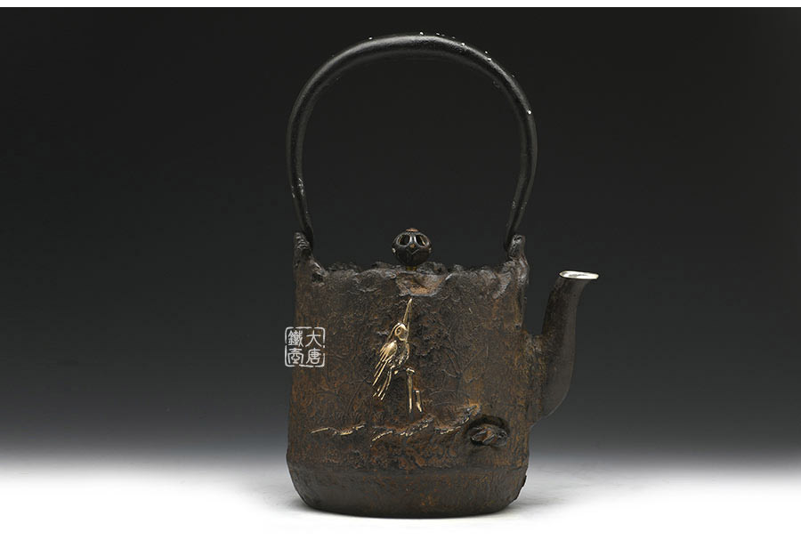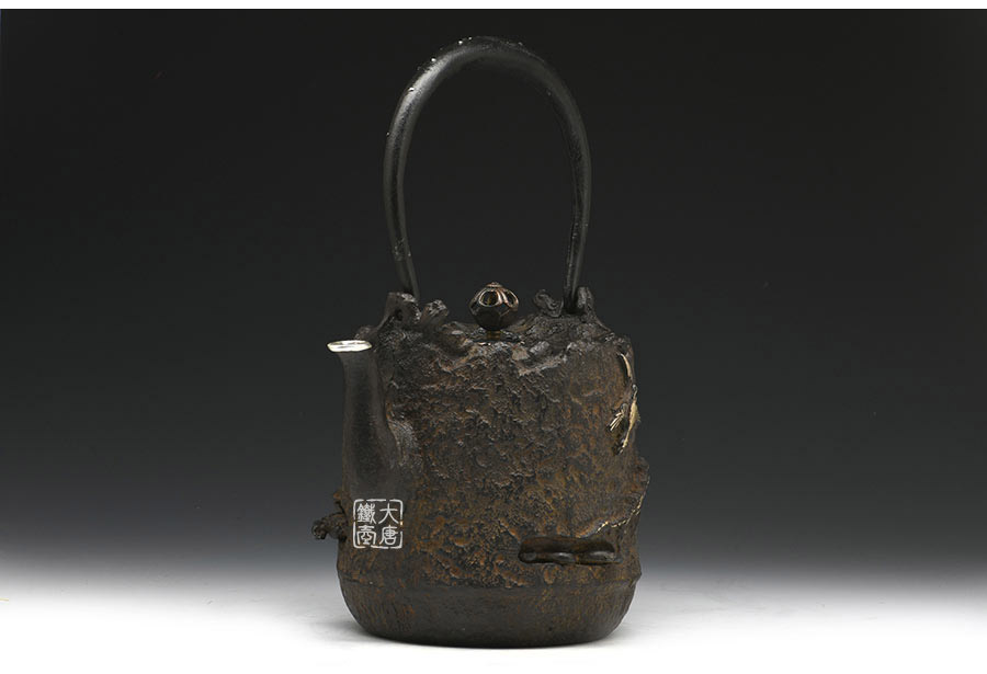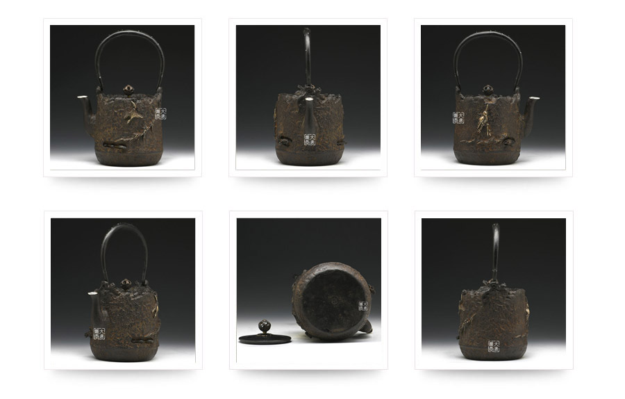 荒井工房的鐵瓶除了在鑄造工藝上有嚴(yán)格的規(guī)范和體系,在鐵瓶裝飾技術(shù)上也頗有建樹。除了傳統(tǒng)的印刻技術(shù)外,荒井工房還掌握了非常出色的金銀鑲嵌技藝,尤其以大片的鏨刻銀片最為出眾,這在山形當(dāng)?shù)靥每谥歇?dú)樹一幟。