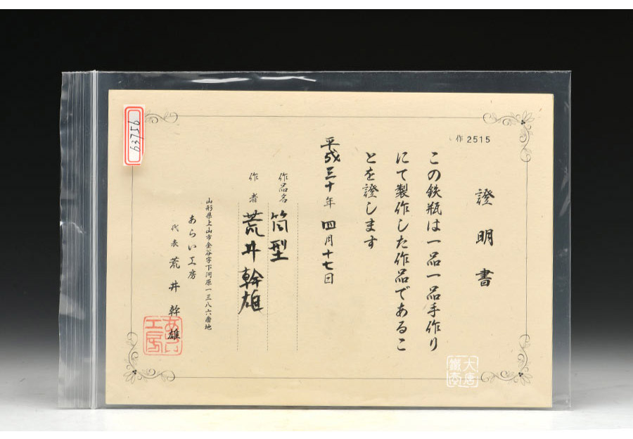 荒井干雄,盡管從29歲才開始跟隨父親學(xué)習(xí)技藝,入門時已過了最佳年齡,但其憑借著一顆對于鐵瓶的執(zhí)著之心走到了今天。不僅自己在山形地區(qū)闖出了名堂,更使荒井家族為之增添了不少榮光。