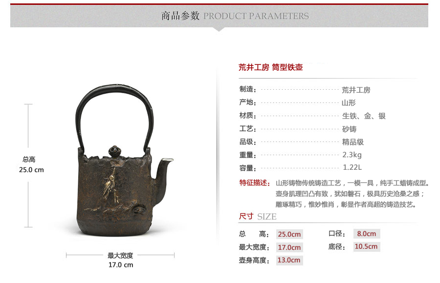 荒井工房是當(dāng)代山形地區(qū)的又一個傳統(tǒng)鐵器堂口,自創(chuàng)業(yè)以來始終奉行“高品質(zhì)、多品種、無謂產(chǎn)量”的準(zhǔn)則,堅持沿用最傳統(tǒng)鐵瓶的制作工藝,一個模具只制作一把鐵瓶,不懈追求鐵壺藝術(shù)的極致之美……