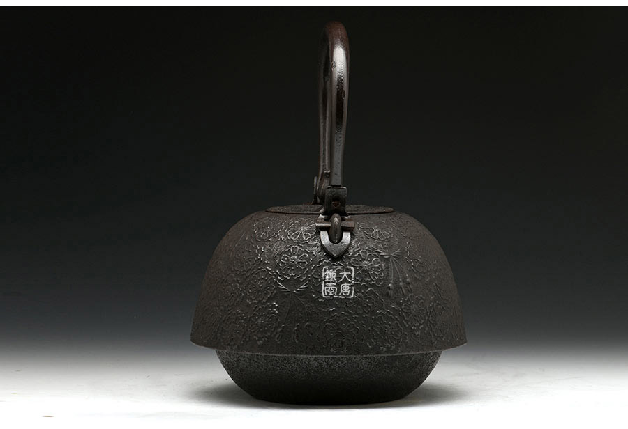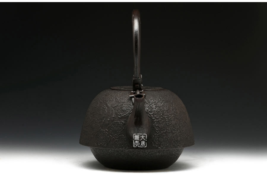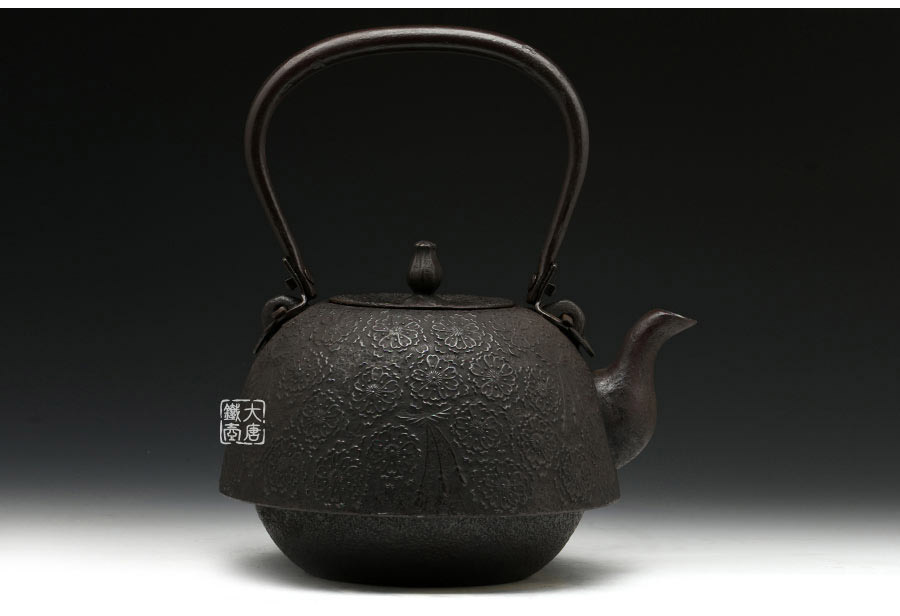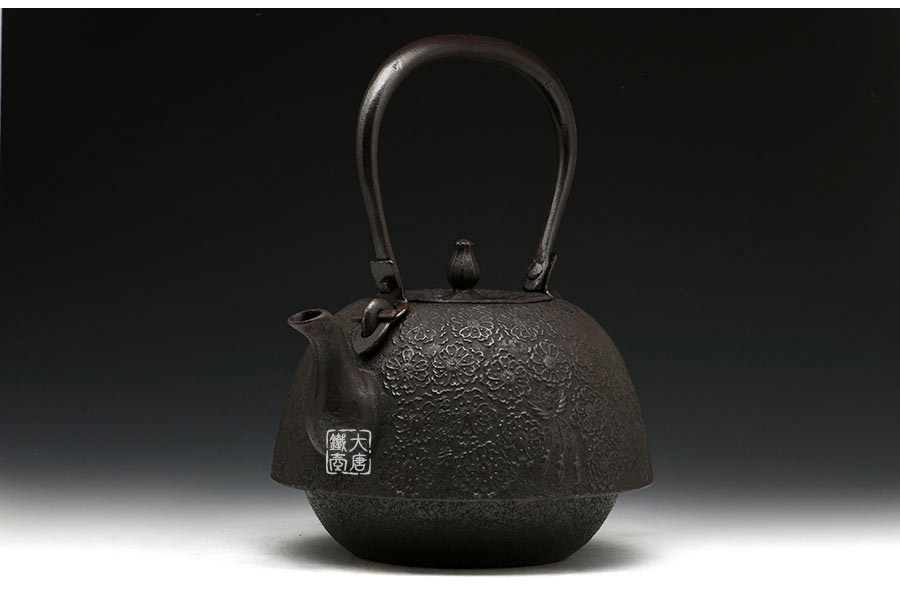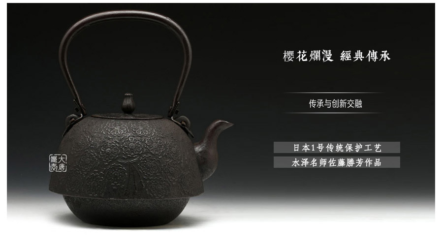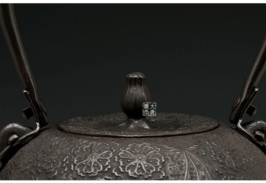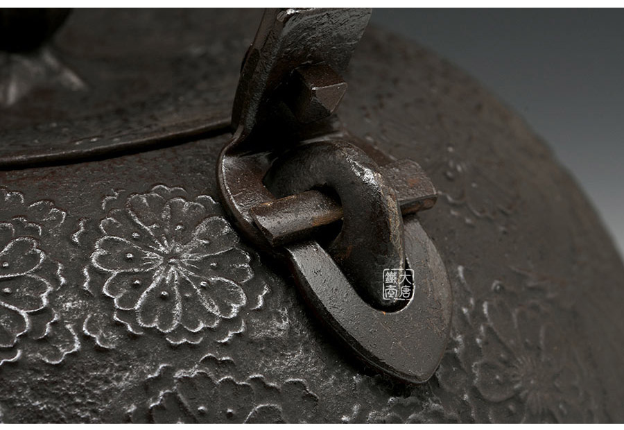 南部水澤名師佐藤勝芳作品,傳統(tǒng)手工工藝,經(jīng)典南部形,櫻花紋飾,插銷式實(shí)心提梁,整器簡約大方,美觀實(shí)用。