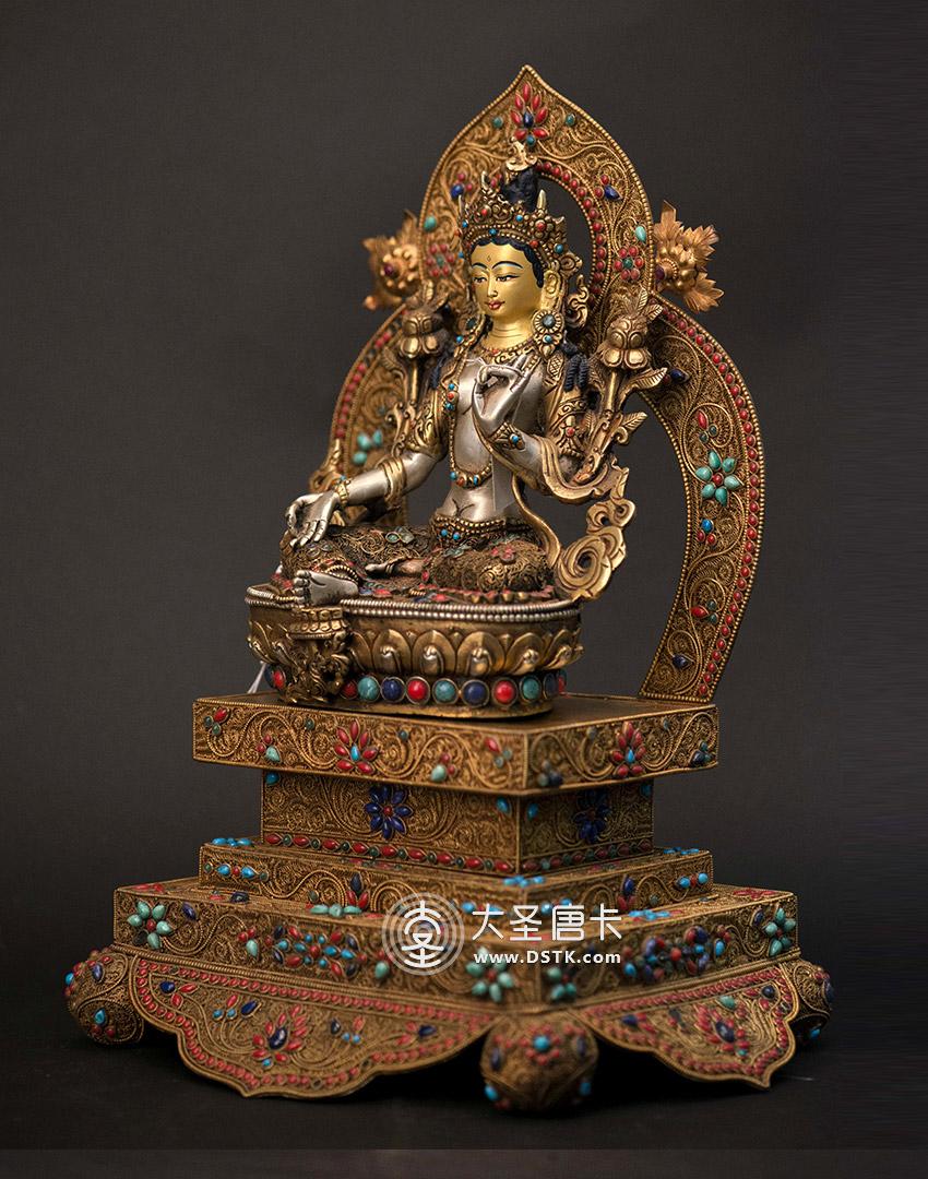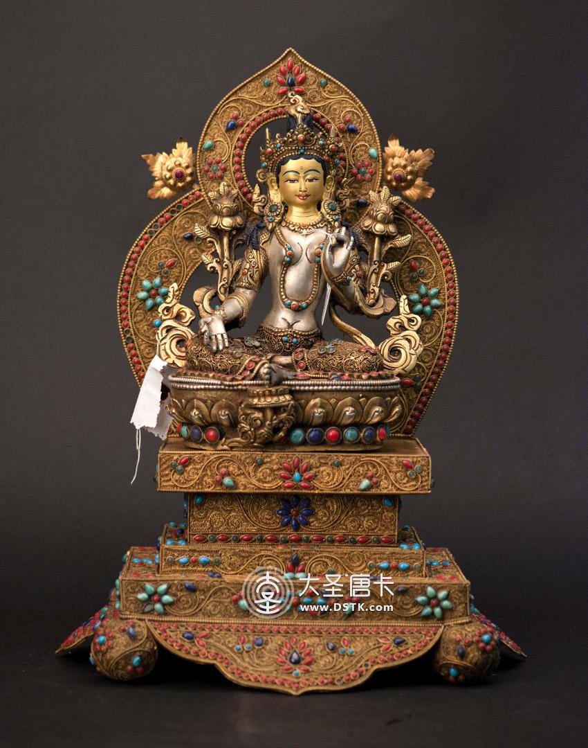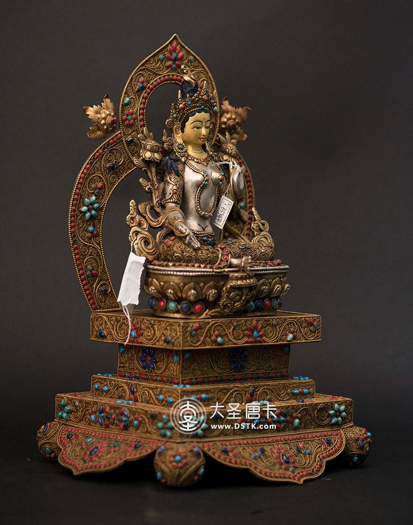 產地:尼泊爾佛像 工藝:鎏金 創作年份:2017 題材:綠度母 繪制時間:0日 尺寸:35*12*15cm 重量:0 g 材質:紫銅 使用場地: