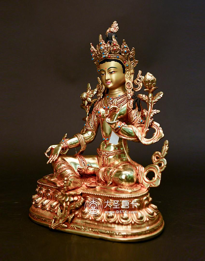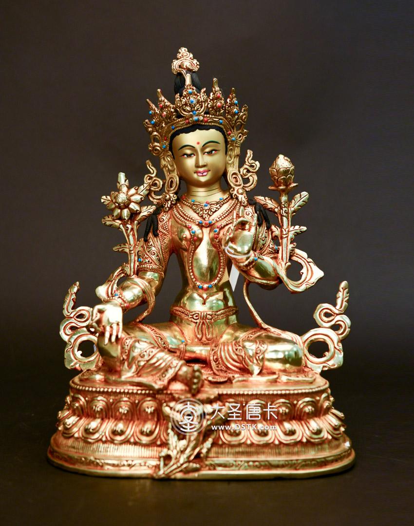 產地:尼泊爾佛像 工藝:鎏金 創作年份:2017 題材:佛母 繪制時間:0日 尺寸:36*15*18cm 重量:0 g 材質:紫銅 使用場地: