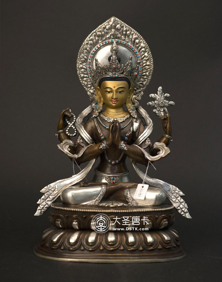 大圣唐卡商城 >> 作品詳情 >> 四臂觀音紫銅一尺