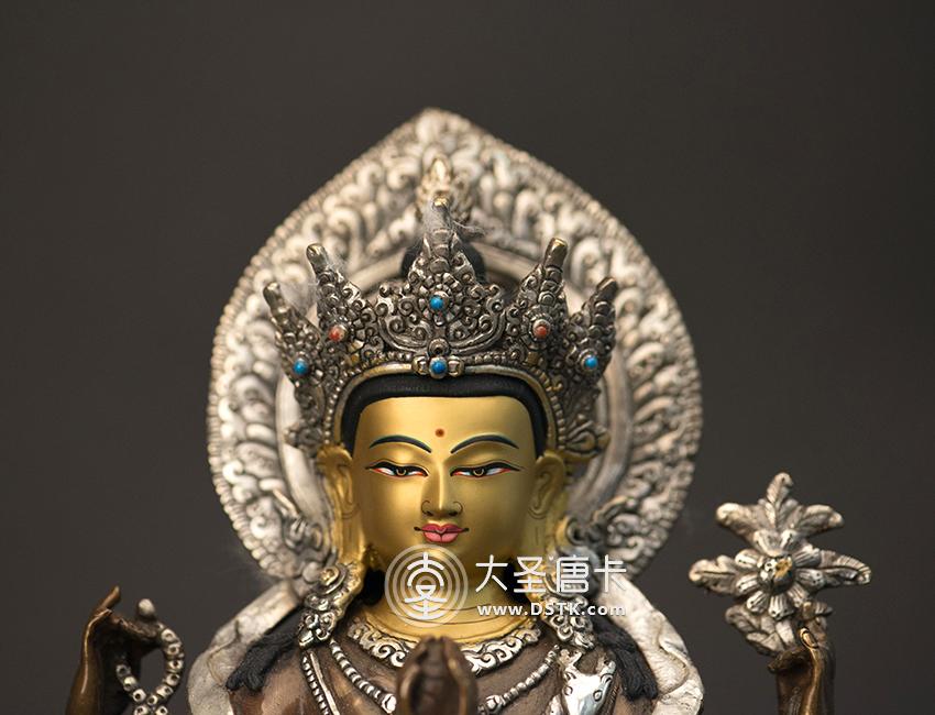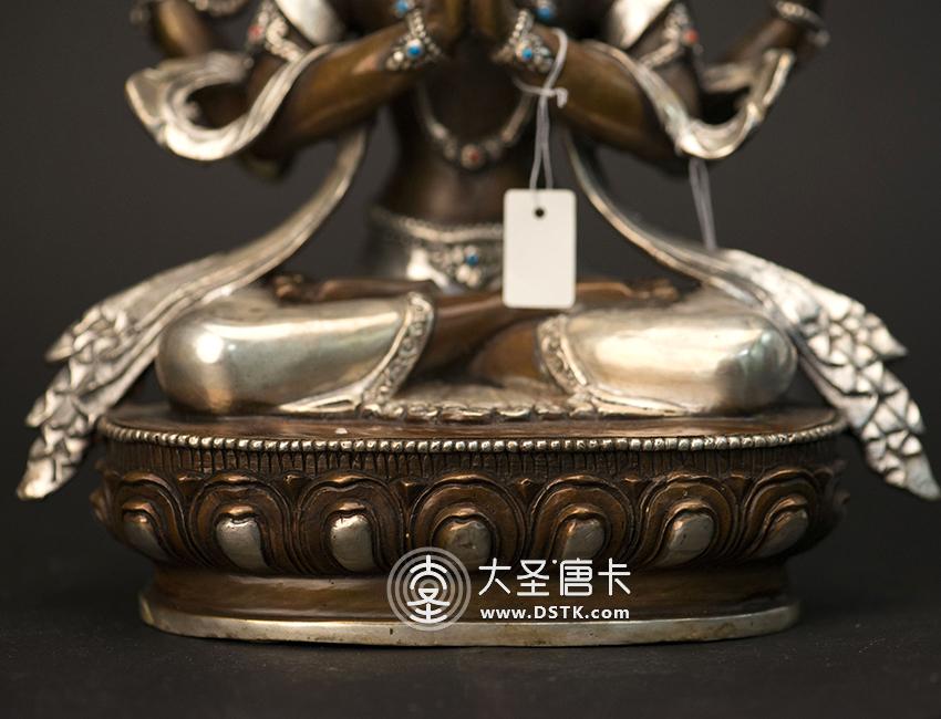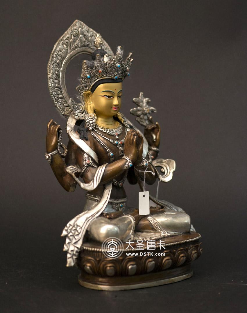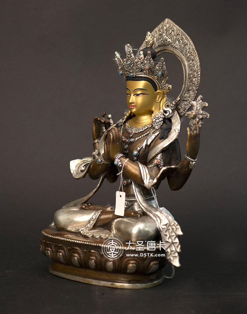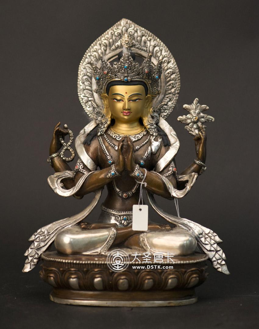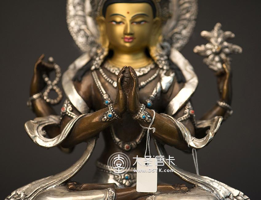 大圣唐卡商城 >> 作品詳情 >> 四臂觀音紫銅鎏銀一尺