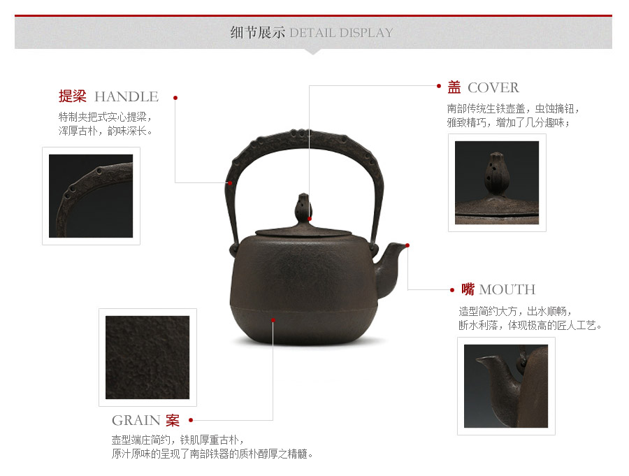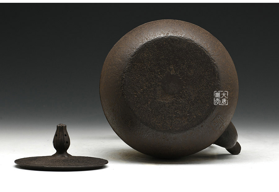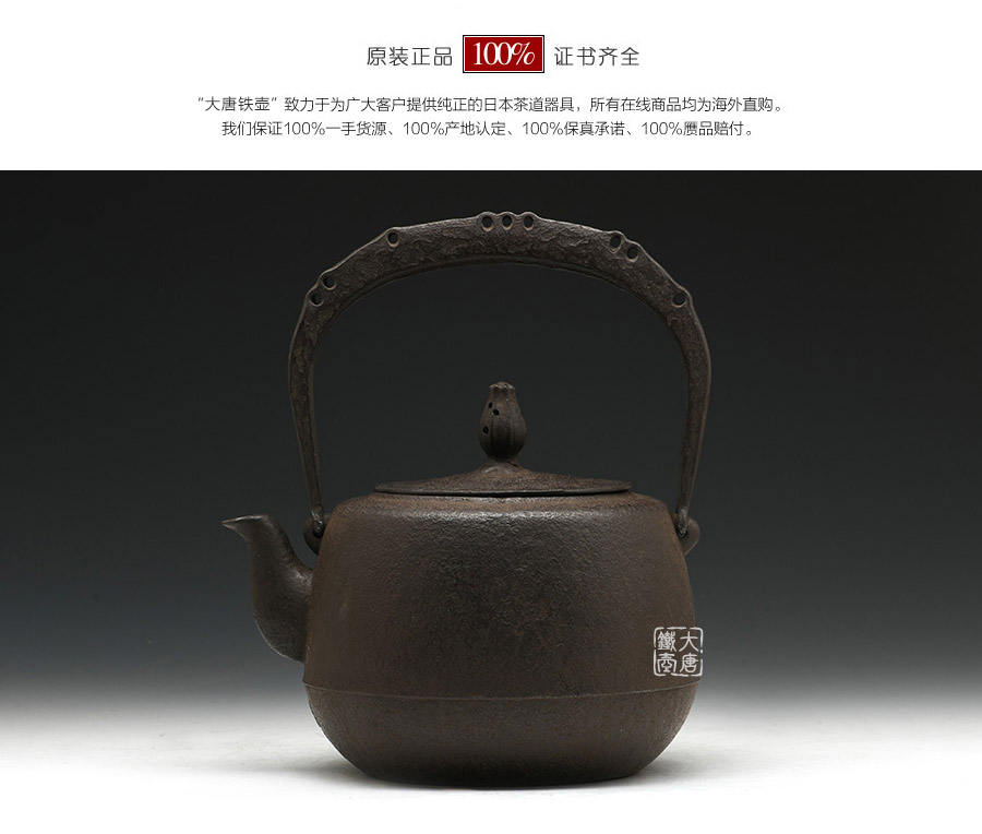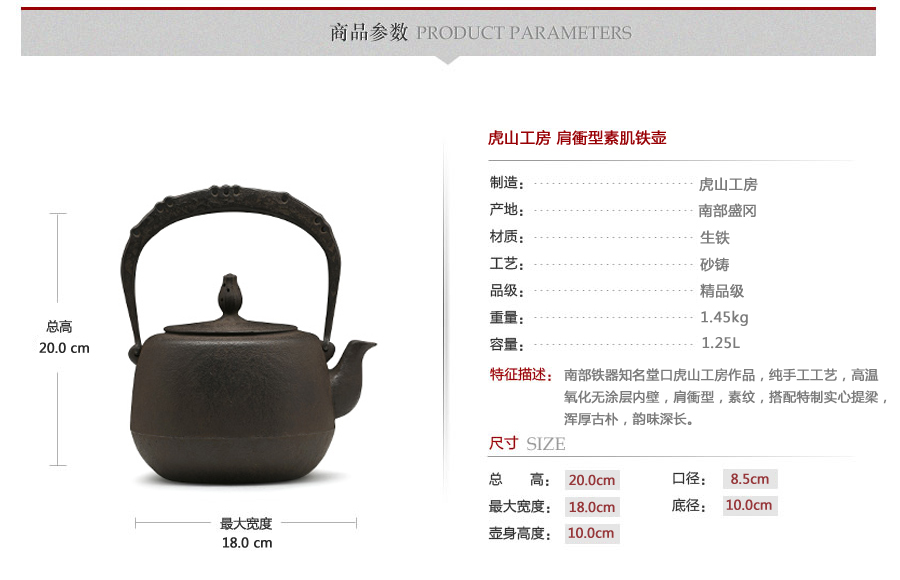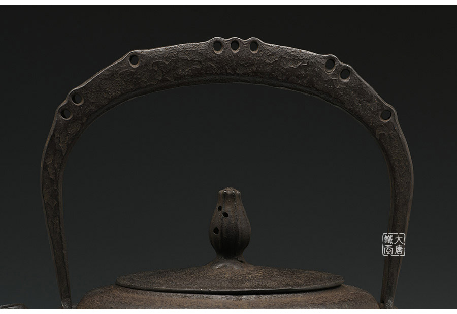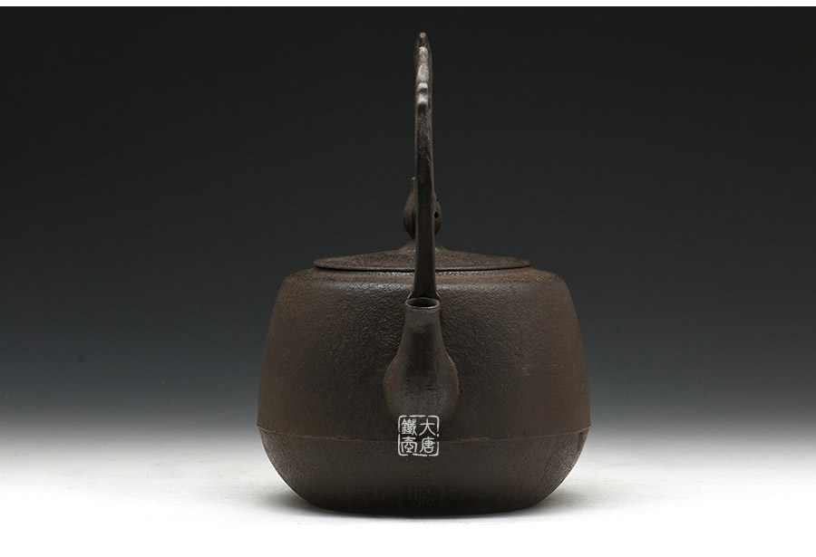 南部鐵器知名堂口虎山工房作品,純手工工藝,高溫氧化無涂層內壁,肩衝型,素紋,搭配特制實心提梁,渾厚古樸,韻味深長。