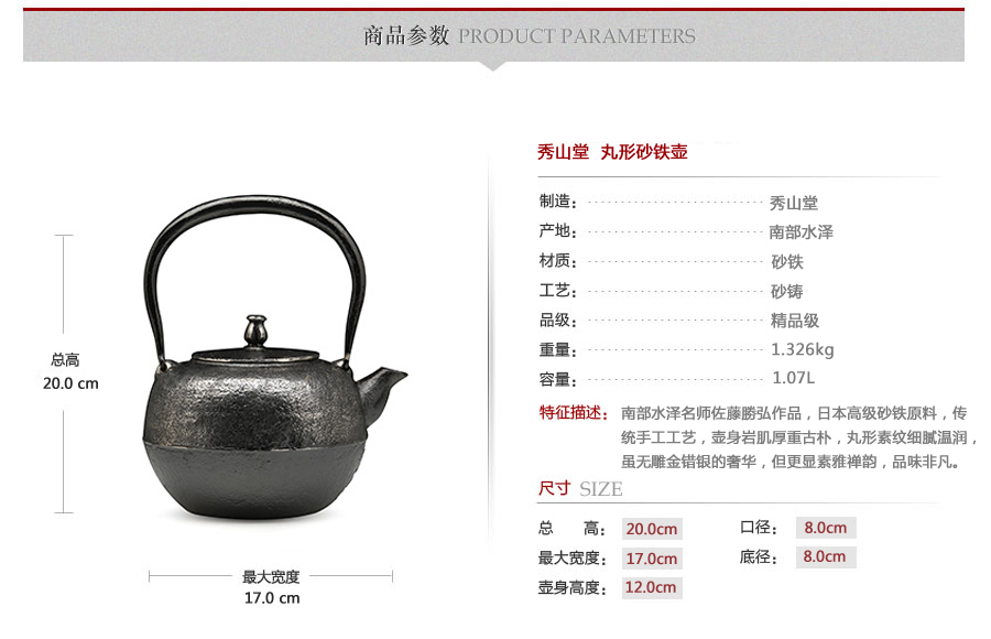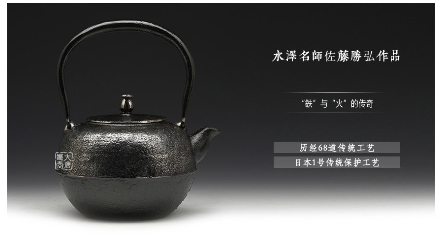 南部水澤名師佐藤勝弘作品,日本最高級(jí)砂鐵原料,傳統(tǒng)手工工藝,壺身巖肌厚重古樸,丸形素紋細(xì)膩溫潤(rùn),雖無(wú)雕金錯(cuò)銀的奢華,但更顯素雅禪韻,品味非凡。