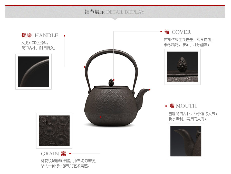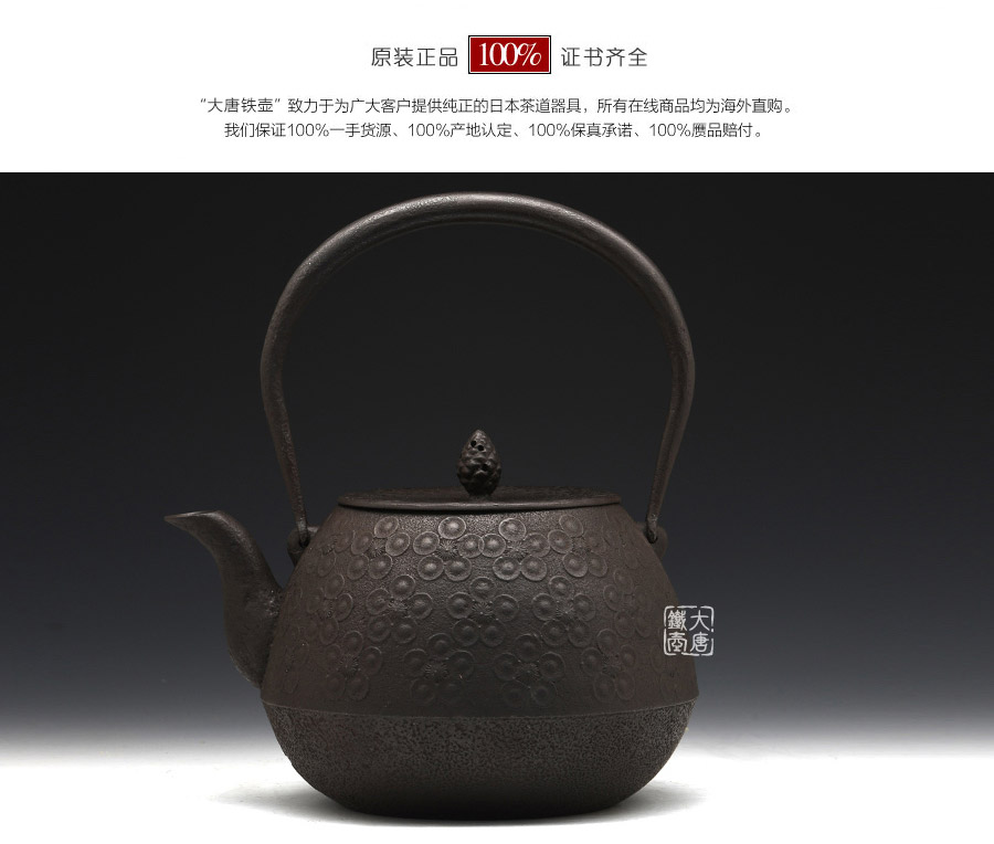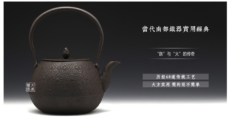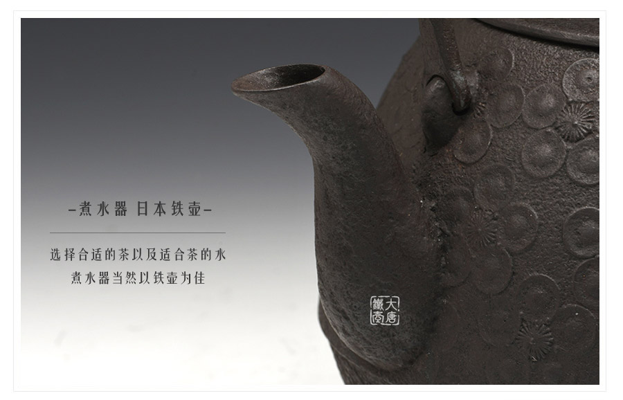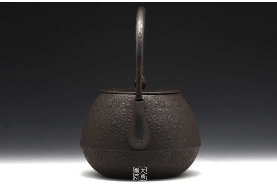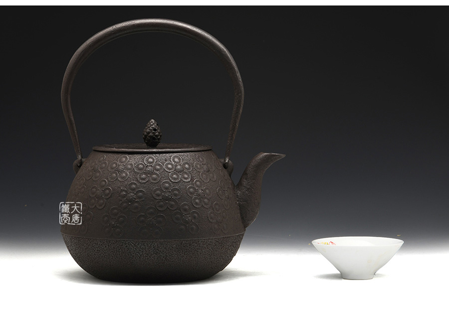 當(dāng)代釜師名堂虎山工房手工精品,壺身造型沉穩(wěn)古樸,鐵肌厚重溫潤,梅花紋飾雕琢細(xì)膩,排布均勻美觀,給人一種淳樸雅致的藝術(shù)美感。