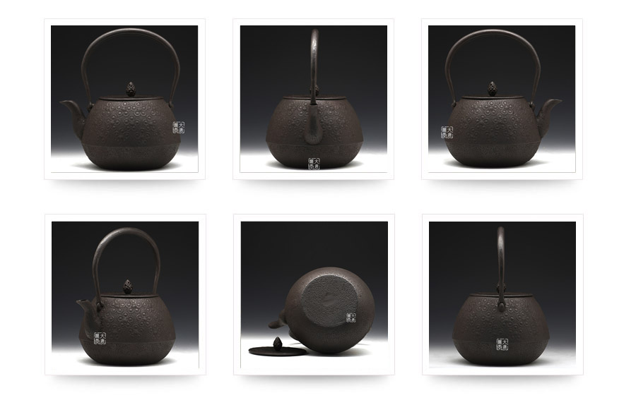 虎山工房創(chuàng)立于1955年,位于盛岡市手作村,是日本南部鐵器中的重要代表。”虎山”之名源于初代釜師熊谷平吉的出生地是以前南部藩飼養(yǎng)老虎的地方,故取“虎山”作為工房的名字。熊谷平吉擅長印刻湯釜和鐵瓶上的圖案,制作的鐵器帶有濃厚的藝術(shù)氣息,被視為鐵和火融合于一身的茶道藝術(shù)品?;⑸焦し恐谱鞯蔫F瓶,主要以砂模澆鑄的方法為主,但是改進(jìn)了木質(zhì)刮板的制模技術(shù),從而得以制作出多邊形的鐵器,在南部鐵器中獨(dú)樹一幟。
