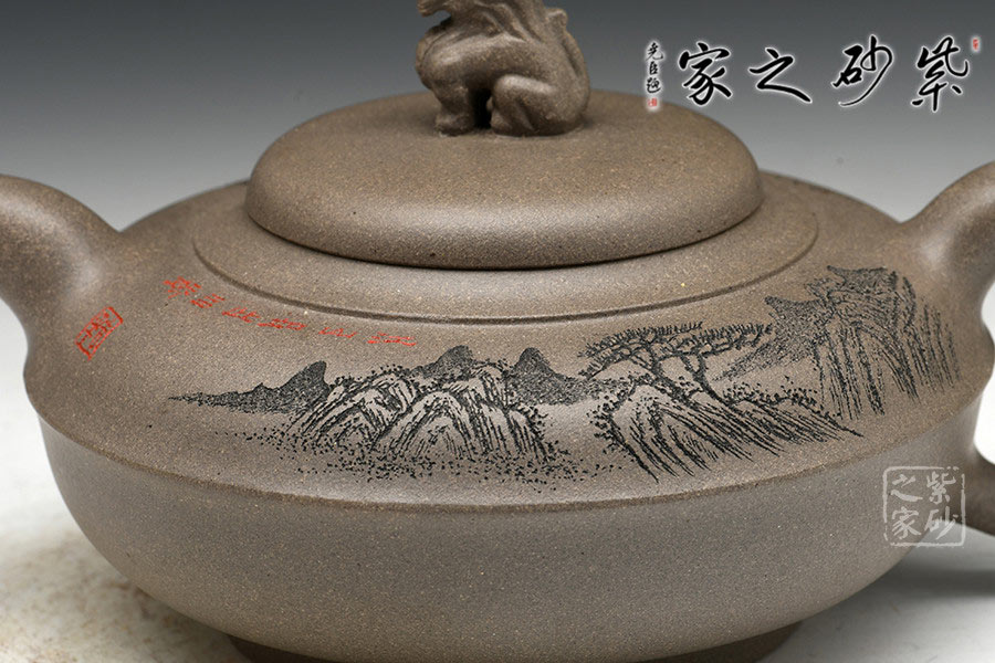 A面: 裝飾: 山水 裝飾者:陶刻藝人 裝飾內(nèi)容: 江山如此多嬌