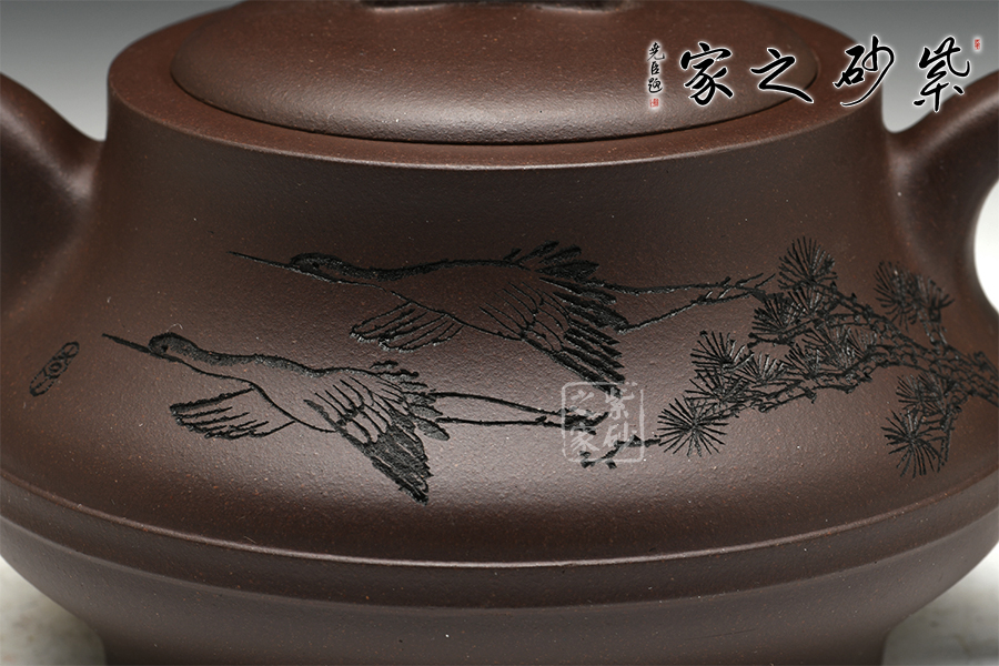 中國工藝美術(shù)大師李昌鴻入室弟子,高級工藝美術(shù)師,雕塑、刻繪及制壺均精通,是位技藝全面的實力派藝師。壺身裝飾都李昌鴻大師親題,注入文化內(nèi)涵的同時,提升作品本身價值。以精致恒,可來解釋老師對此款壺的用意,以精細(xì)的做工達(dá)到精益求精的效果。該作品器型穩(wěn)重,以線條貫穿全器,流暢細(xì)膩的線條,足見老師老練的技藝以及對精工的追求。壺身線條有起有伏,制作難度較大。致恒也表明了老師對待紫砂的態(tài)度,精益求精,力求完美。