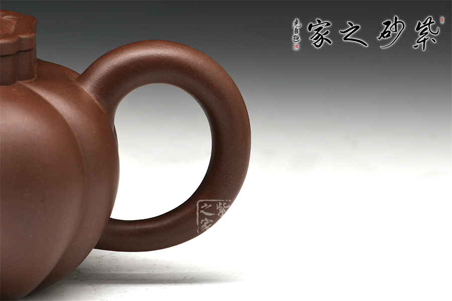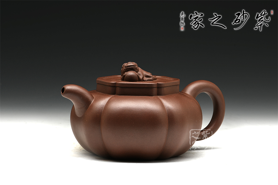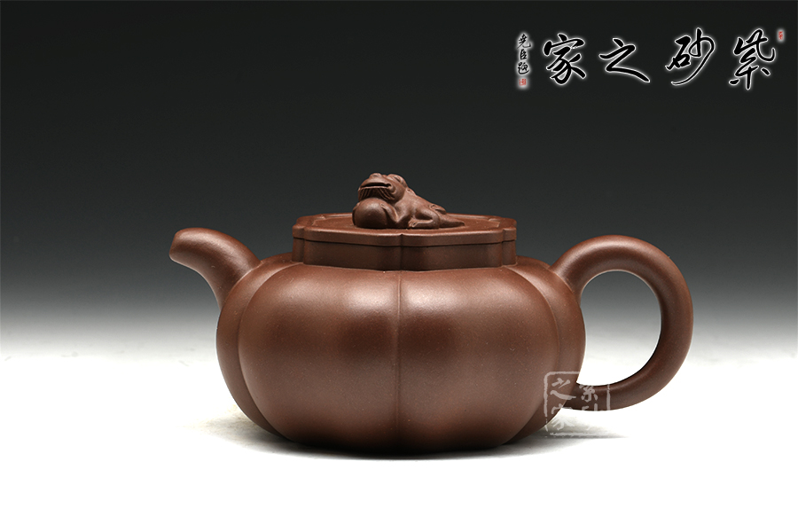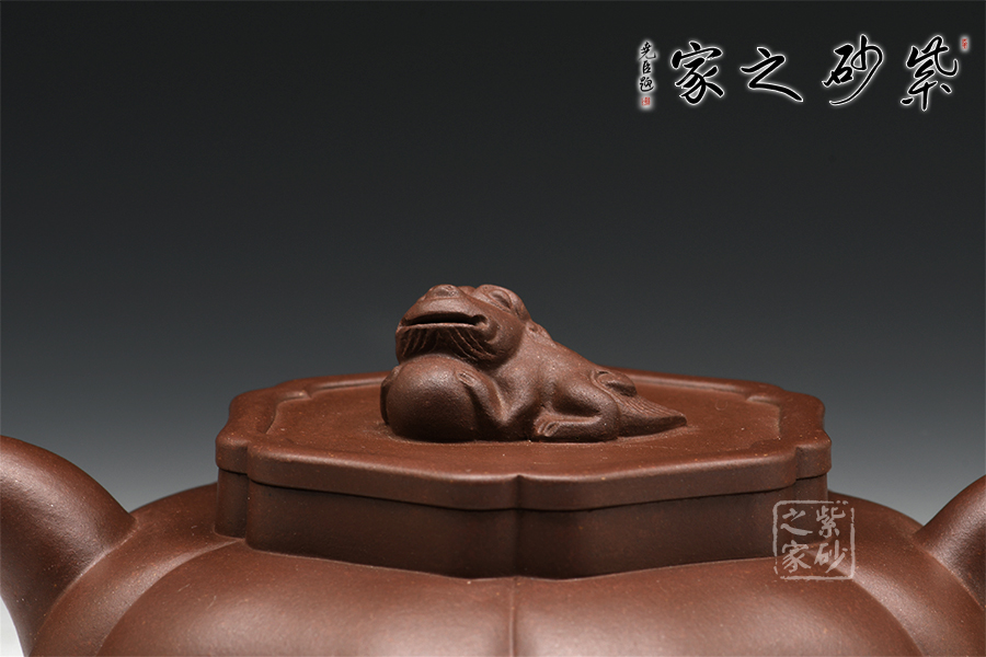 當(dāng)今紫砂技藝卓絕的年輕陶藝家之一毛建韋,師從實力派名匠袁國強,精于手工制壺,制出作品皆手工成型,是位潛力無限的80后中堅力量。獅球壺盛行于清末民初,清末著名紫砂名家江案卿是因獅球壺器形名聲大振。以泥中精品底槽青手制,泥料堅致,呈深紫色,壺身分為六瓣筋囊,作扁球狀,一彎流,正耳把式,蓋沿較短略似海棠形,銜接緊密且面面皆可嚴(yán)絲合縫。蓋鈕塑以伏獅,信手拈來,氣暢神怡又憨態(tài)可掬。