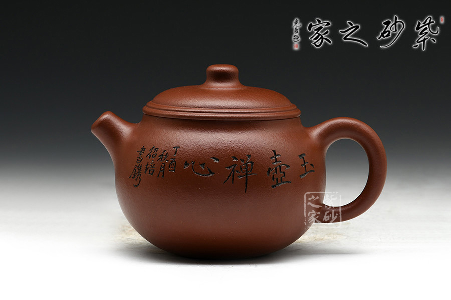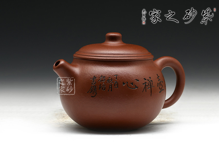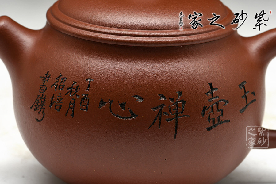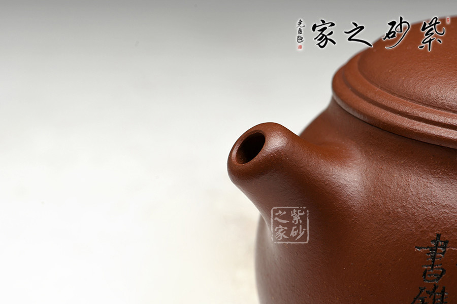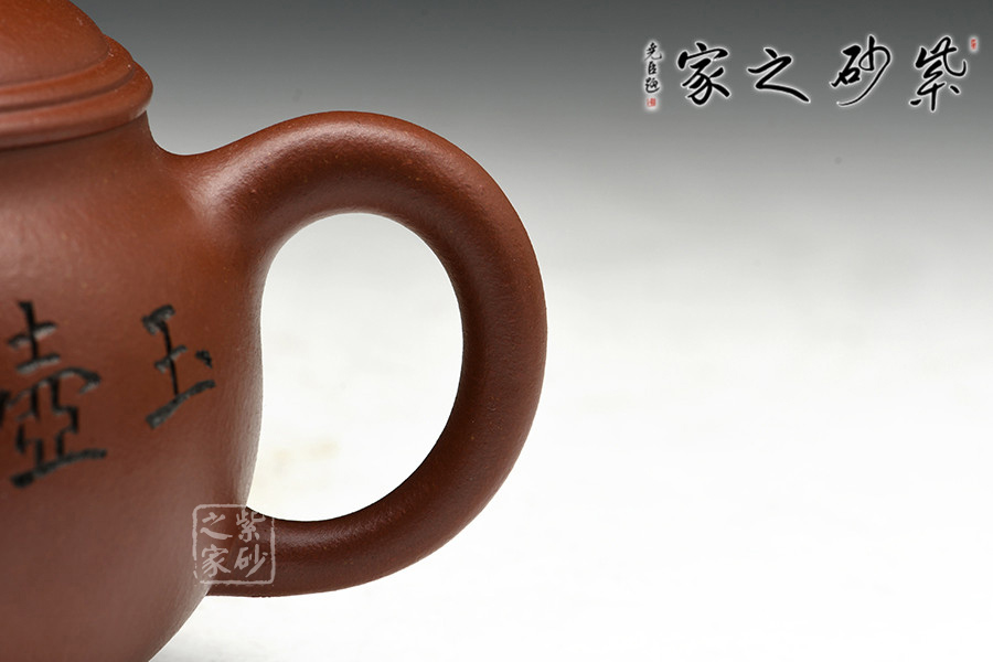 此壺身圓形美,鈕蓋簡潔大方,線條溫婉優(yōu)美,直流短嘴,耳形彎把自然過渡,停至壺底。