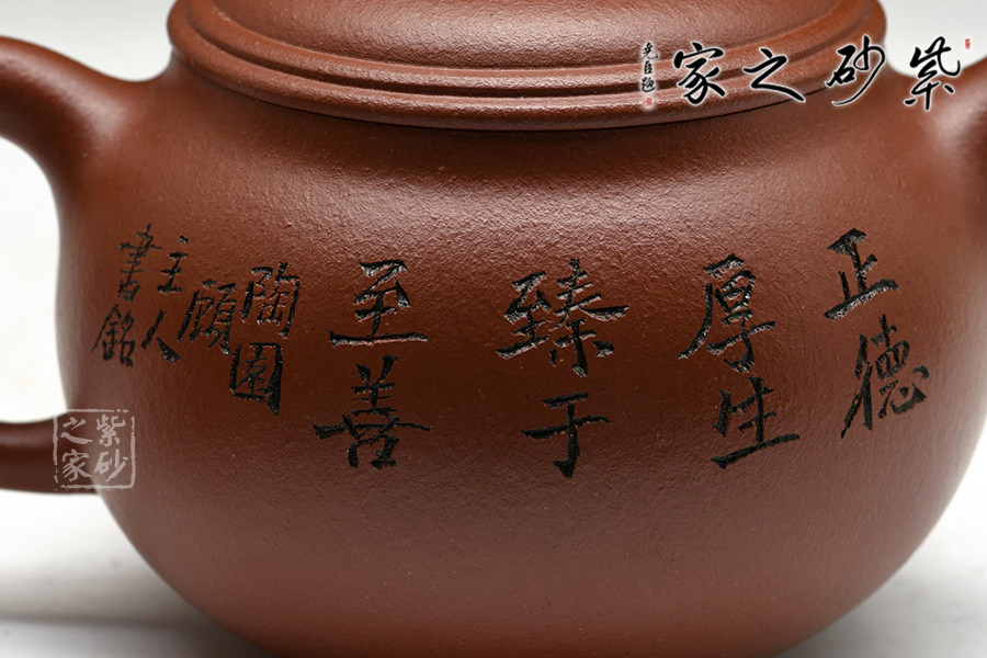 壺身一面課“玉壺禪心”,書法功底深厚,字體剛中帶柔,運(yùn)筆入神,背面刻“正德厚生,臻于至善”表達(dá)了主人心存善念,厚德載物的修養(yǎng)和一心修禪的超凡脫俗之態(tài)。