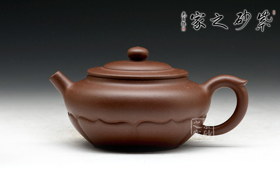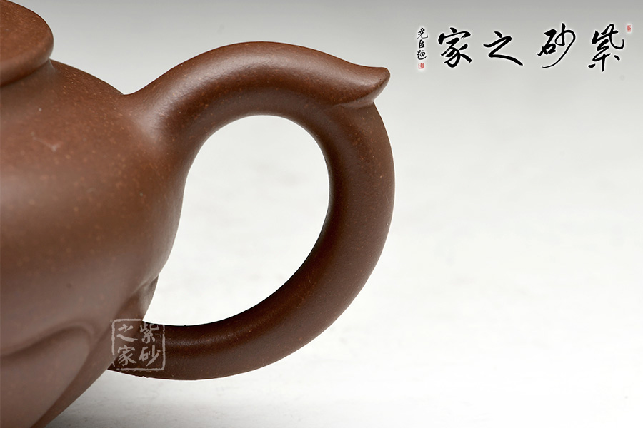 與其他壺不同的是,蓮花盛開是在壺身中下部位,而不是整個(gè)身筒?;ò晔㈤_之態(tài),線條清晰,對仗工整,絕對是精心制作。壺鈕至壺嘴、壺把過度自然,開而不闊,收斂有度,是收藏玩味的上佳之選。