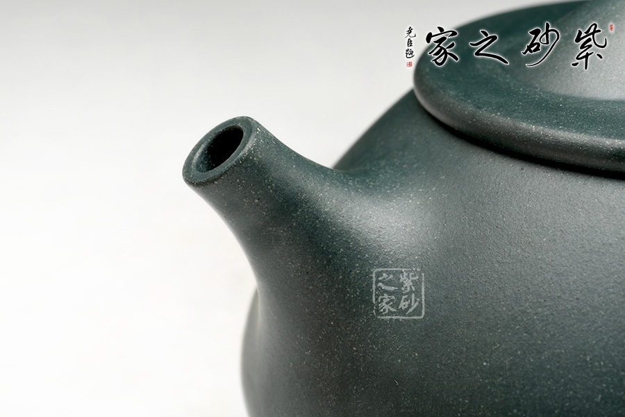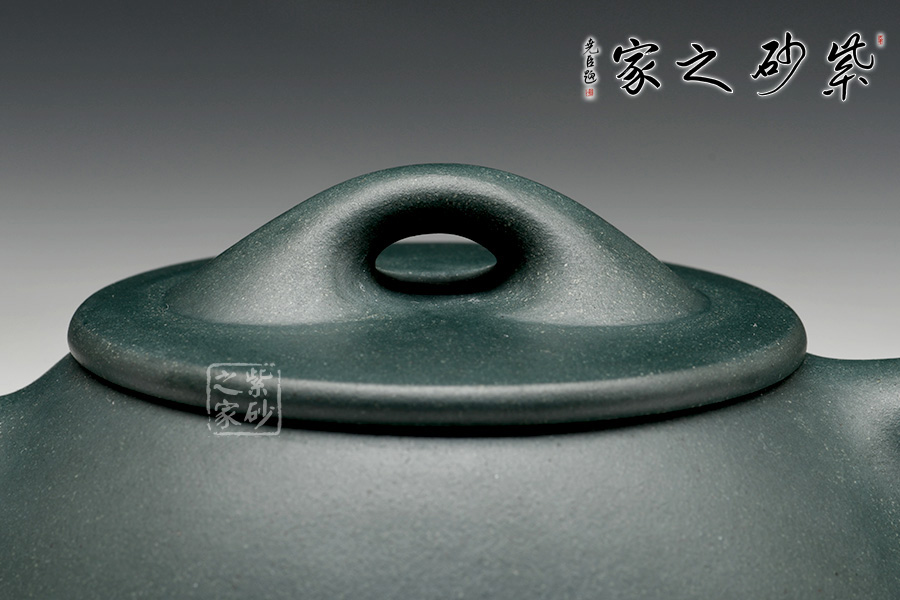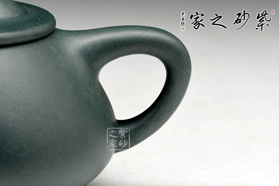花器皇后許智萍,師從紫砂七老王寅春之子王小龍,在全手工制壺方面有極高造詣,當(dāng)今最具發(fā)展?jié)摿Φ乃噹熤?。存世量極少的民國(guó)綠泥為料,泥質(zhì)細(xì)膩,色澤暗亞,氣韻幽然。全手工制作典范,細(xì)節(jié)各處皆極致有感,造型簡(jiǎn)練,古樸大方,剛中有勁。流把鈕均為暗接手法,與壺身宛若一體,可見功力。橋鈕搭接在平蓋之上,直流嘴,三角把拐角處略微圓潤(rùn);壺身較為飽滿,乳足圓潤(rùn),略見憨態(tài),透露幾分柔美,文人氣息頗濃。