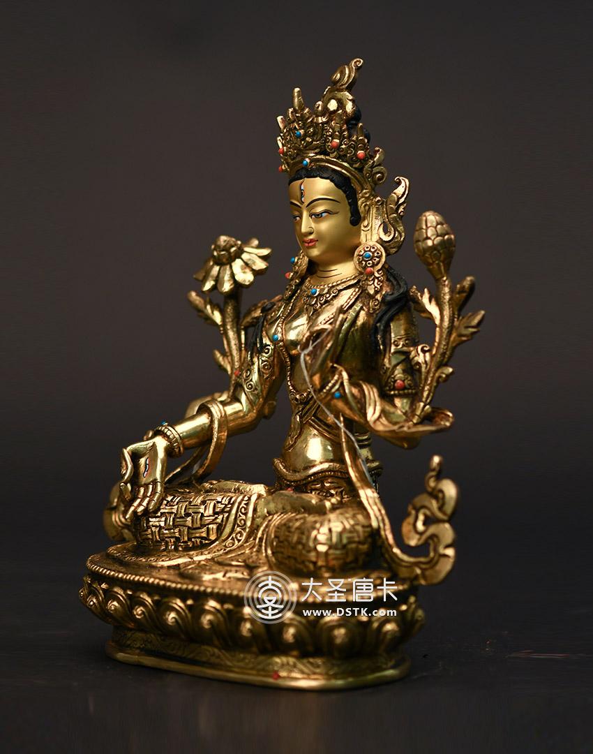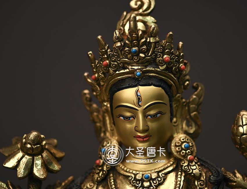 產地:尼泊爾佛像 工藝:鎏金 創作年份:2017 題材:佛母 繪制時間:0日 尺寸:23*12*15cm 重量:0 g 材質:紫銅 使用場地: