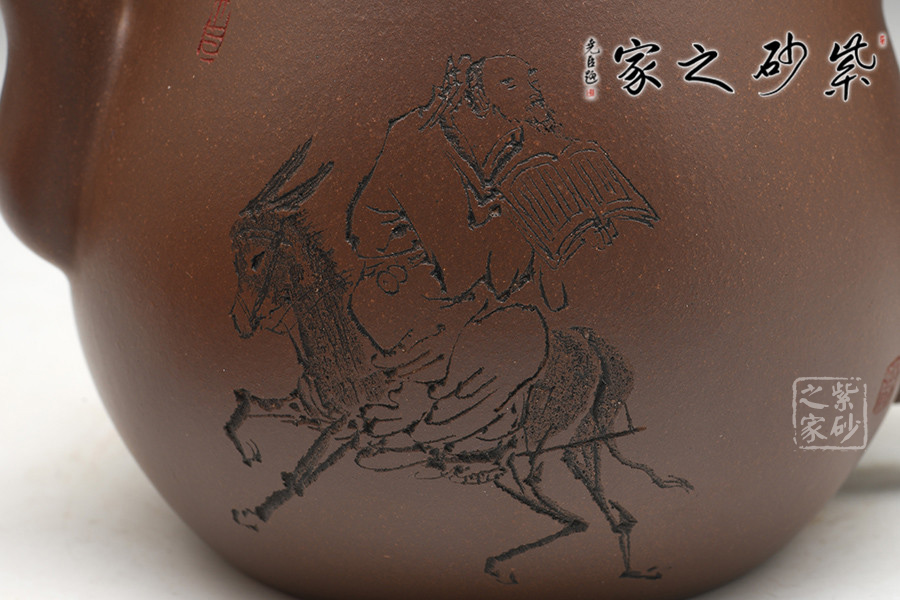 A面: 裝飾: 騎驢看書 裝飾者:徐赟 裝飾內(nèi)容: 老者穩(wěn)坐驢背,專注看書,任驢子隨意走動,耐人回味。