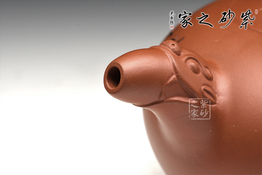 造型古樸大氣,特別是以獨(dú)具傳統(tǒng)文化色彩的龍入題,令整壺更加古色古香。此壺成型難度高,形制挺拔有力,做工難度大,凸顯著楊老師幾十年的紫砂制陶功底。