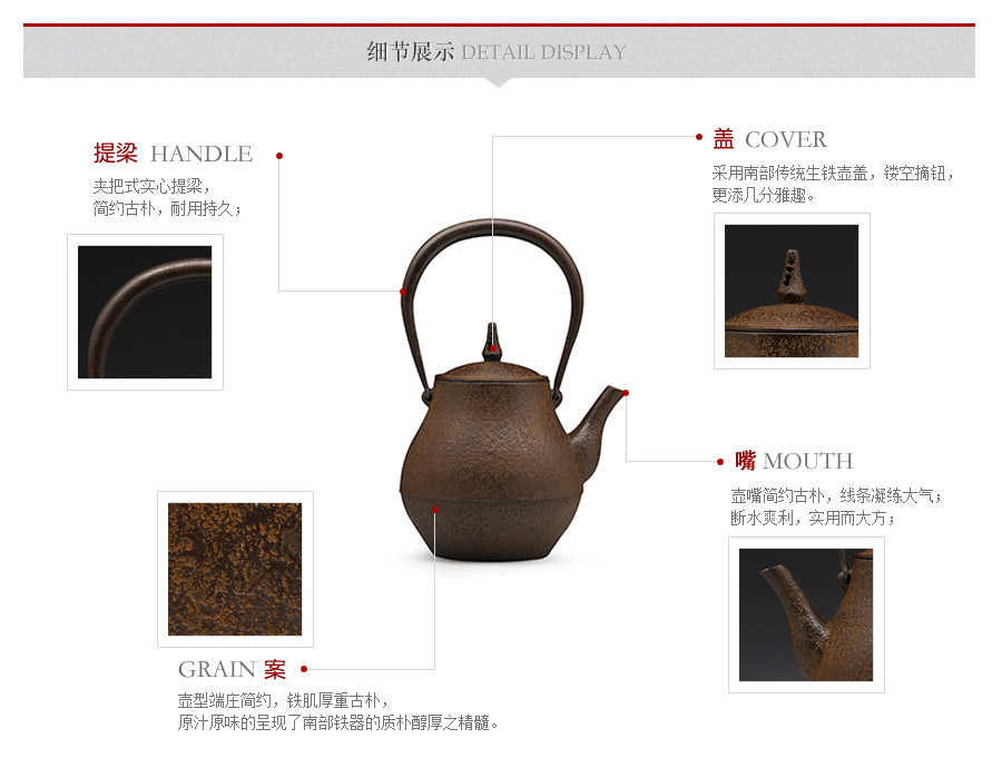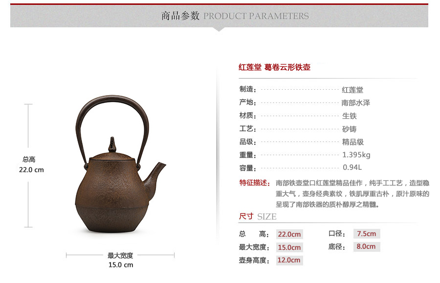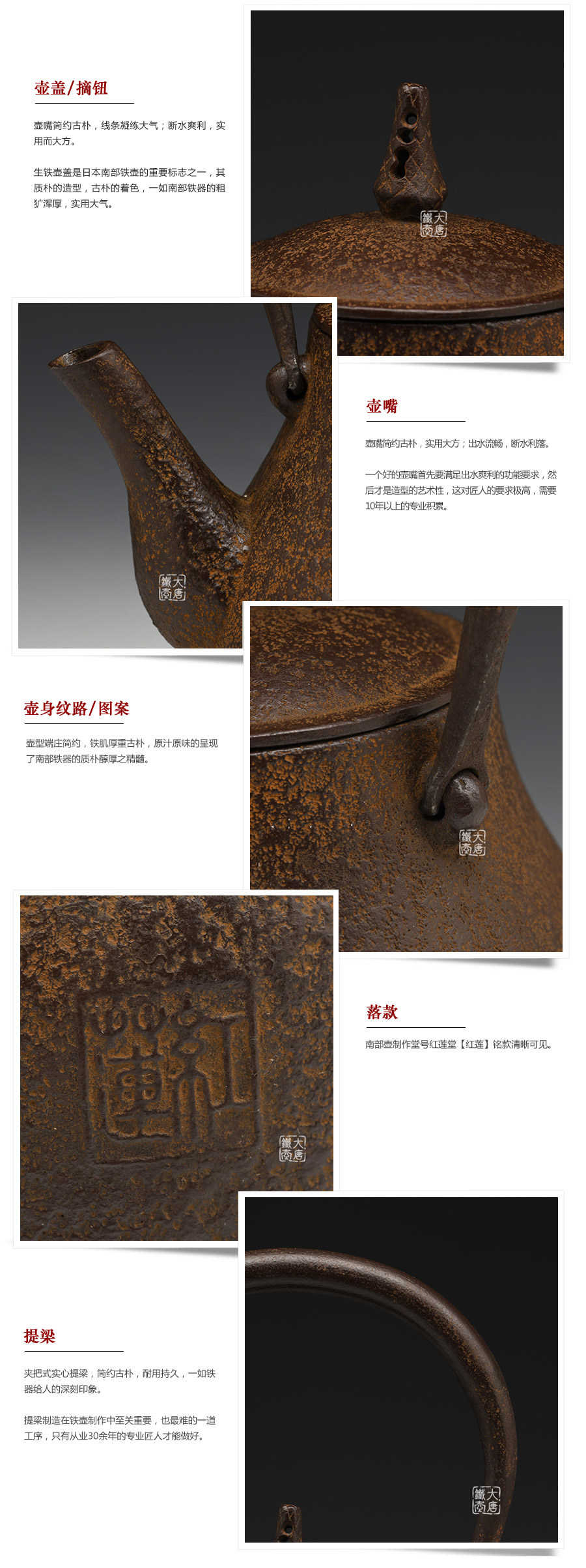 南部鐵壺堂口紅蓮堂精品佳作,純手工工藝,造型穩(wěn)重大氣,壺身經(jīng)典素紋,鐵肌厚重古樸,原汁原味的呈現(xiàn)了南部鐵器的質(zhì)樸醇厚之精髓。