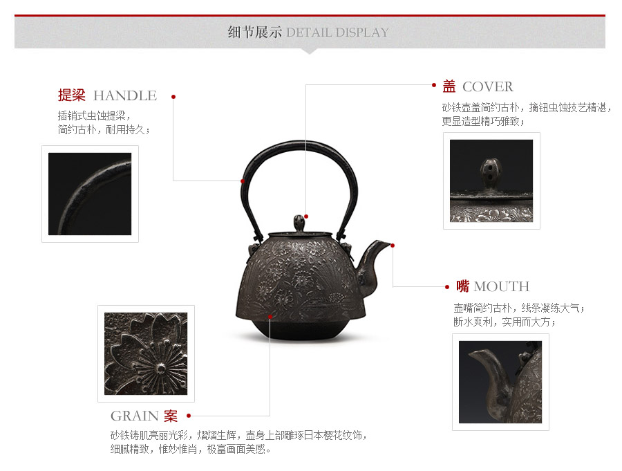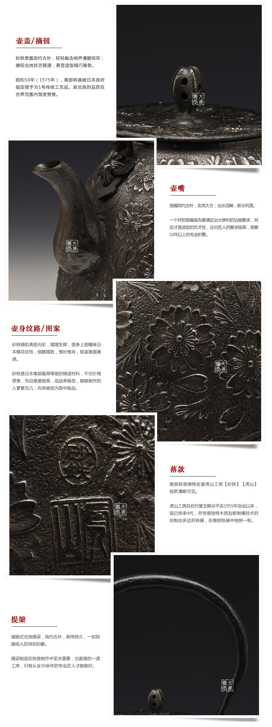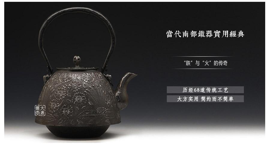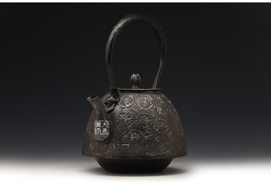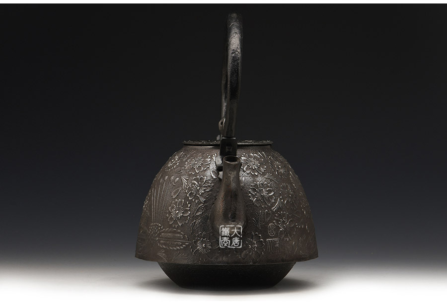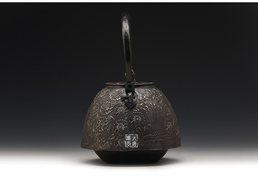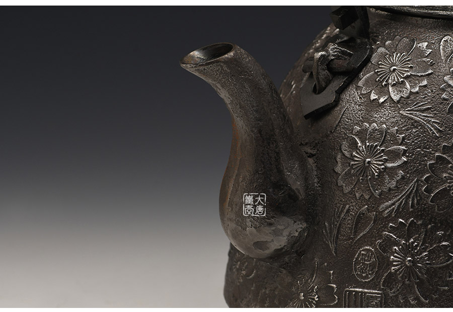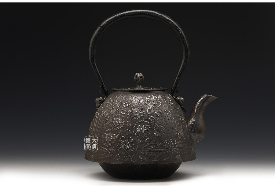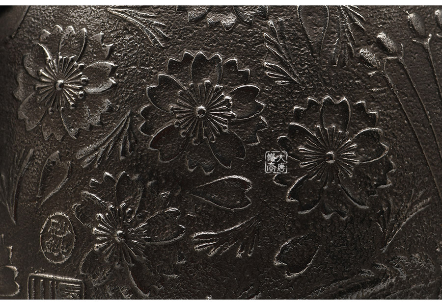 當(dāng)代釜師名堂虎山工房砂鐵精品,傳統(tǒng)砂鑄工藝,經(jīng)典南部形,櫻花紋飾,色澤亮麗光彩,雕琢細膩精致,堪當(dāng)?shù)洳卣淦贰?/p>