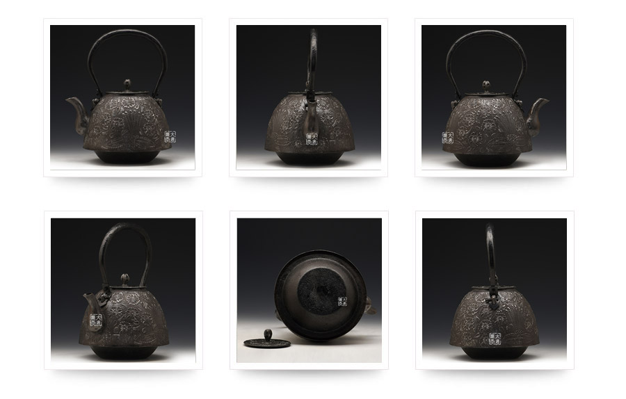 虎山工房創(chuàng)立于1955年,位于盛岡市手作村,是日本南部鐵器中的重要代表?!被⑸健敝从诔醮獛熜芄绕郊某錾厥且郧澳喜糠曫B(yǎng)老虎的地方,故取“虎山”作為工房的名字。熊谷平吉擅長印刻湯釜和鐵瓶上的圖案,制作的鐵器帶有濃厚的藝術(shù)氣息,被視為鐵和火融合于一身的茶道藝術(shù)品?;⑸焦し恐谱鞯蔫F瓶,主要以砂模澆鑄的方法為主,但是改進了木質(zhì)刮板的制模技術(shù),從而得以制作出多邊形的鐵器,在南部鐵器中獨樹一幟。