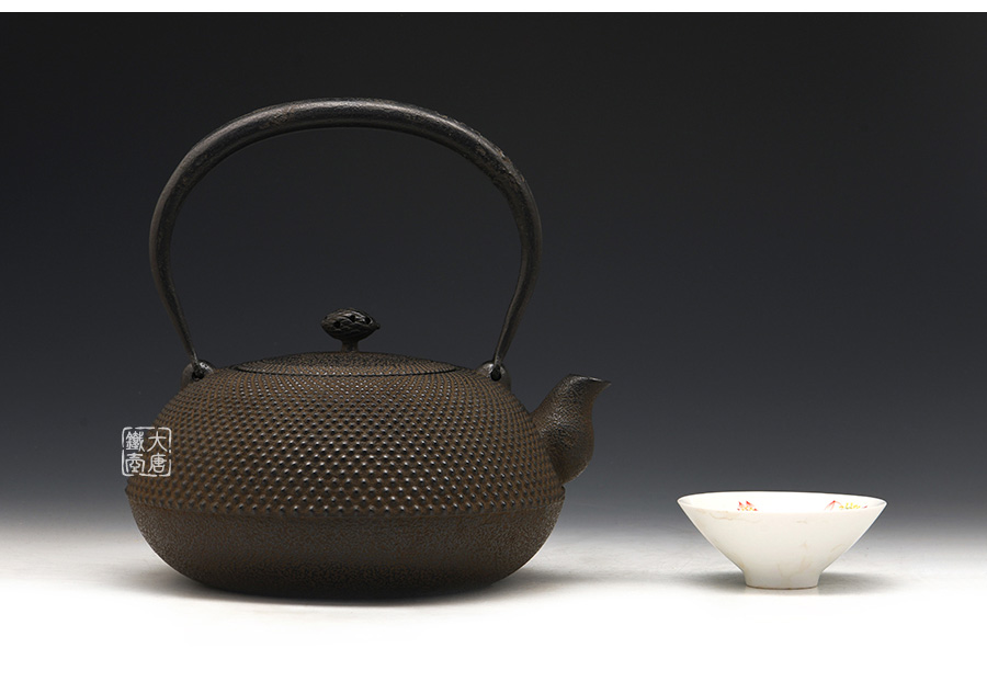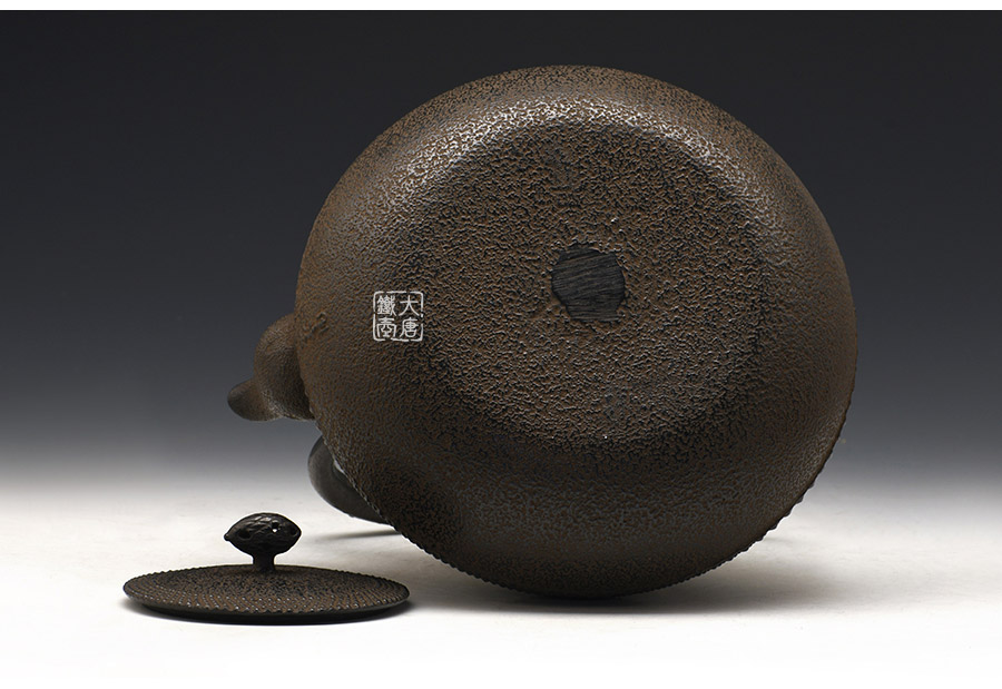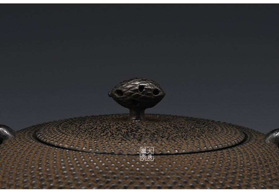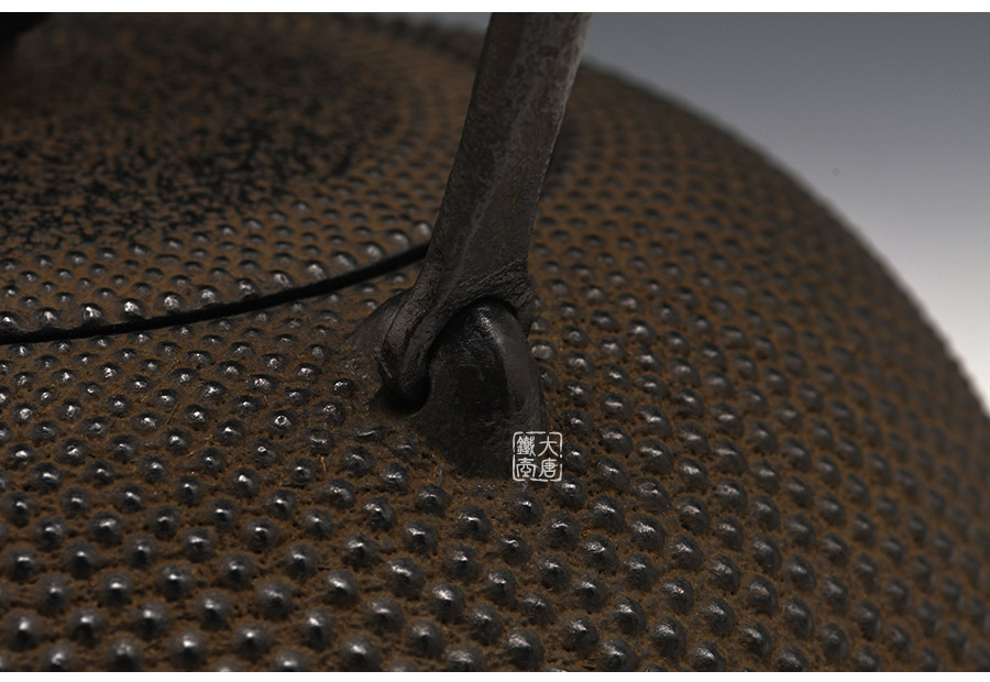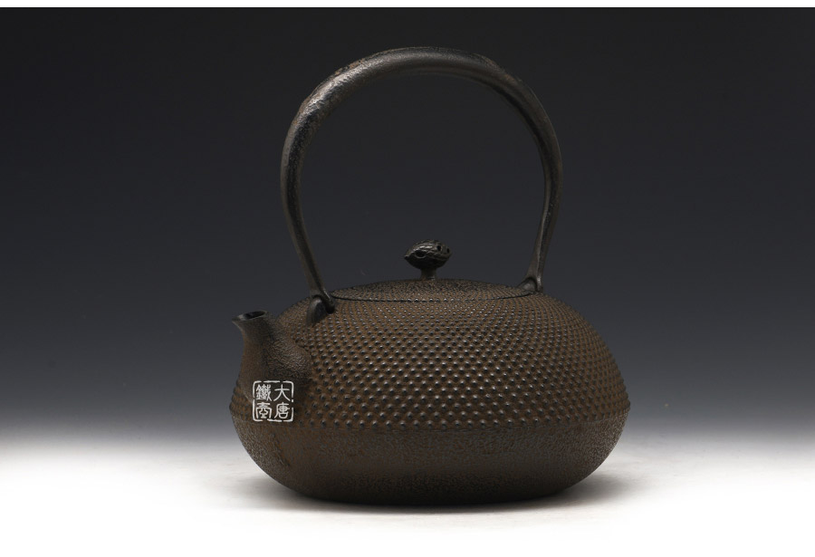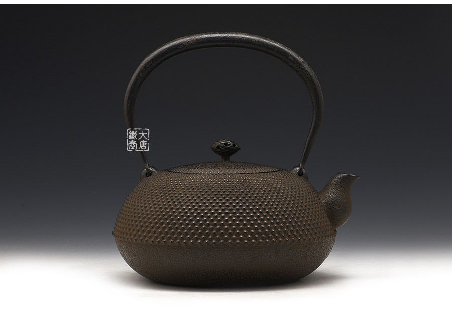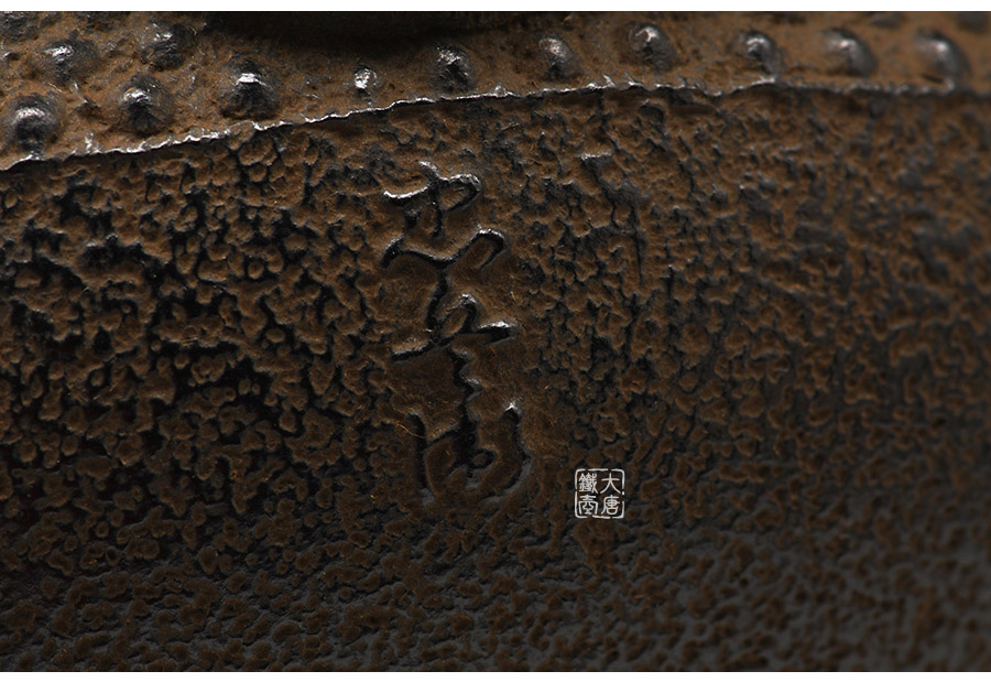 南部藩御釜師、鈴木雙子星之主善堂忠兵衛(wèi)鐵壺精品,【忠兵衛(wèi)】款。經(jīng)典平丸型,霰紋,高溫氧化防銹內(nèi)壁(無涂層),搭配傳統(tǒng)生鐵壺蓋,蟲蝕摘扭,更顯雅致古樸,大氣渾厚。