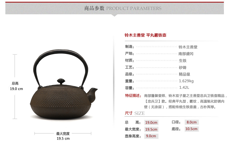 鈴木主善堂位于盛岡南大街,創(chuàng)立于1616年,是盛岡最古老的南部鐵器制造商之一。用代代相傳的鑄造技術(shù)做出來的鐵器倍受歡迎,來自全國的定單絡(luò)繹不絕。近年來又推出新系列的樣式,“要讓簡單實(shí)用的鐵瓶表現(xiàn)出美的感覺”12代鈴木傳人一直保持并發(fā)揚(yáng)著這樣的信念。