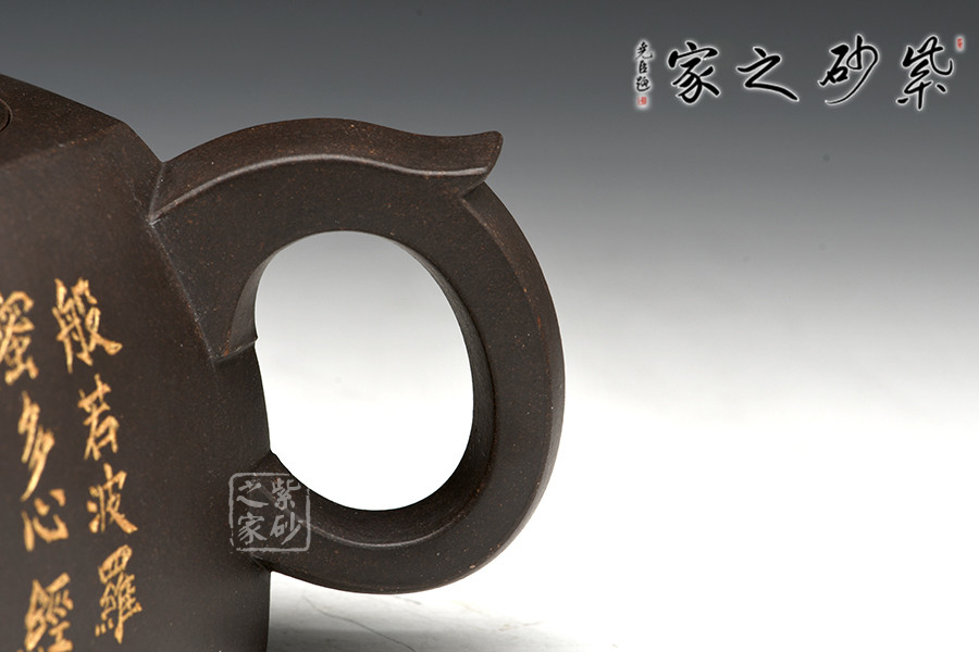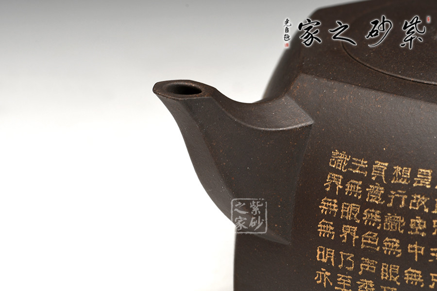 80后極具發(fā)展?jié)摿η嗄晏账嚰抑軓╀h,專注生全手工方器制作,曾獲景舟杯手工比賽銀獎(jiǎng),是備受關(guān)注的方器之星。此壺作六方井欄造型,簡(jiǎn)單大方,尤為體現(xiàn)制壺功力。壺身上小下大,六方造型一絲不茍,工整精細(xì),足見(jiàn)制作難度和用心程度。壺肩至壺蓋部分過(guò)度平滑,六邊形線條同心環(huán)繞,層次感十足。橋型壺鈕制作精巧,非??蓯?ài)。壺把和壺嘴用六方制作,但方中有圓,工整且不失圓滑美妙。古有“背井離鄉(xiāng)”之說(shuō),井即為故鄉(xiāng)之意,以井欄為型,即是希望離家的你,無(wú)論身處何處,都能平平安安。