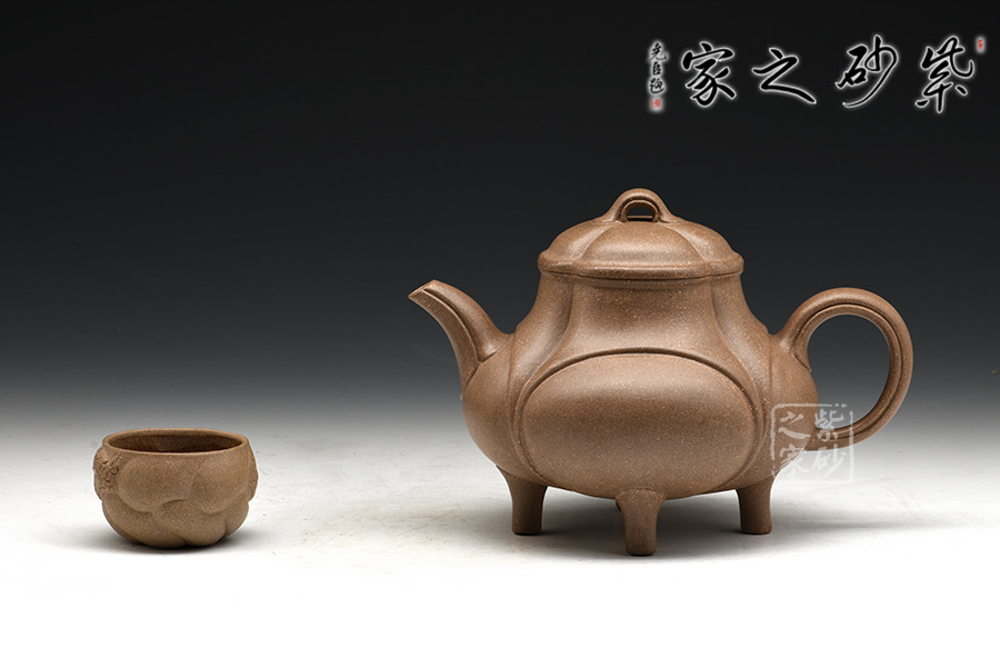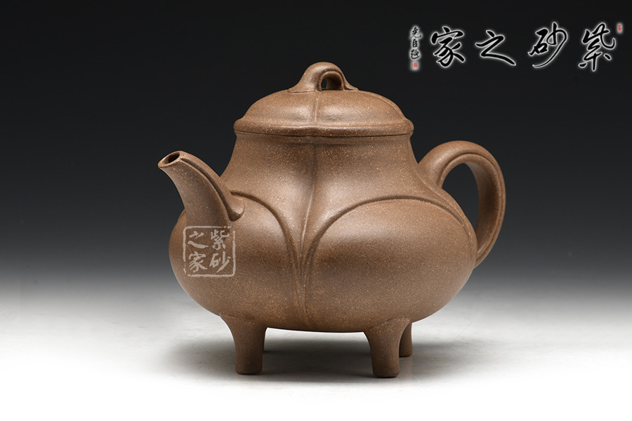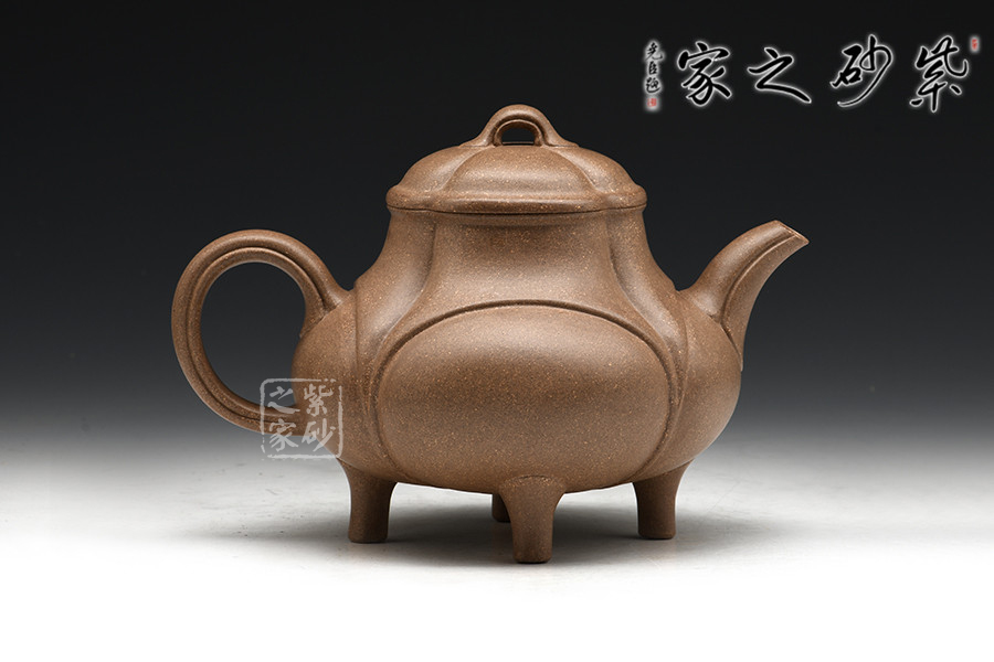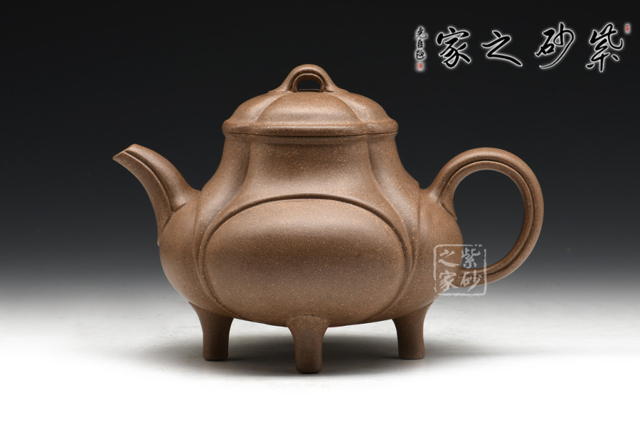 全手工制壺名匠潘洪強,衷于原創(chuàng)設計,所出之壺必為精品。四次在手工比賽中獲獎,是手工制作中的實力派。金玉滿堂是吉祥文化的重要組成部分,以此為題表達了美好的情感訴求。此壺屬福祿壽喜系列作品之一,是以其中的祿為題材的紫砂作品。整體造型設計遠觀猶如一四足寶鼎,下寬上窄,四平八穩(wěn),高高的四腳支撐著壺身,壺身下張上收,正反弧線貫穿其中,過渡自然,張馳有度,形態(tài)優(yōu)美。