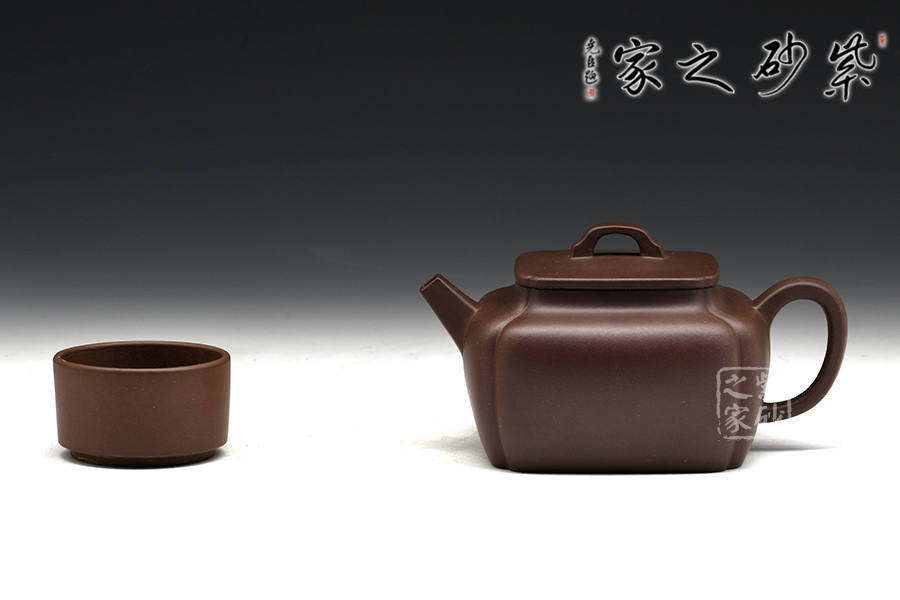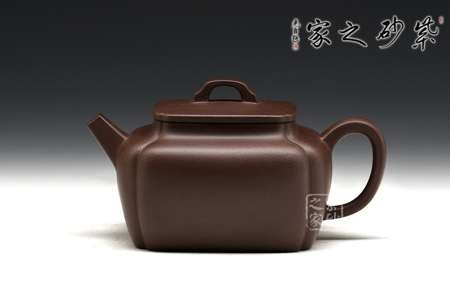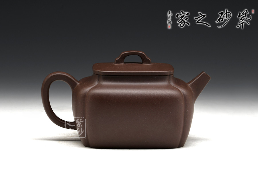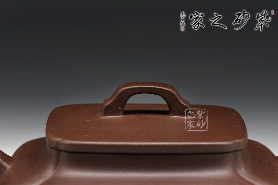 此壺造型端莊沉穩(wěn),美觀自然,是一把代表性的方器。壺身是一個(gè)四方形,四個(gè)面平整光滑,工藝天成。抽角設(shè)計(jì),給方器中加入圓滑的弧線,讓人覺得溫柔和緩,樂于親近。