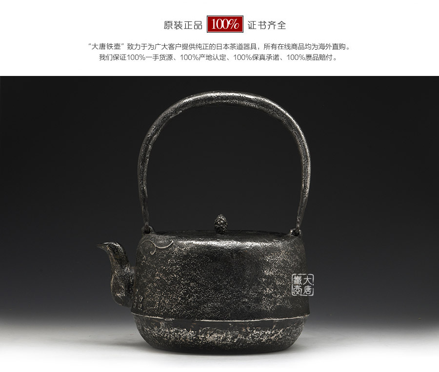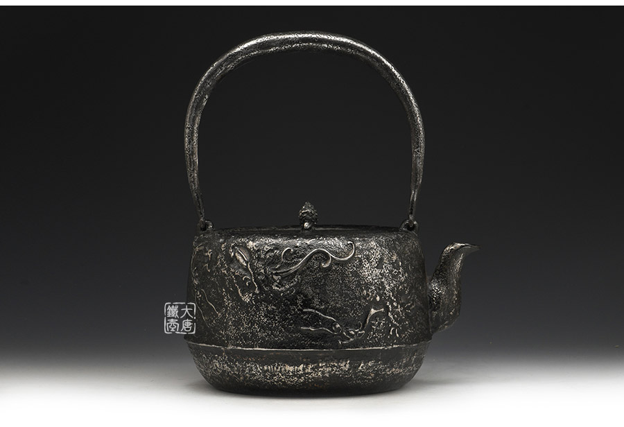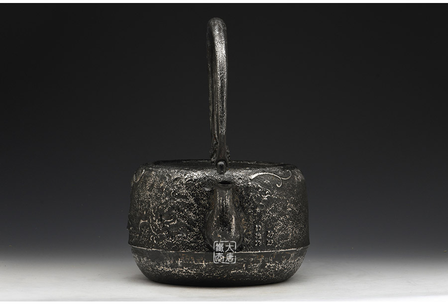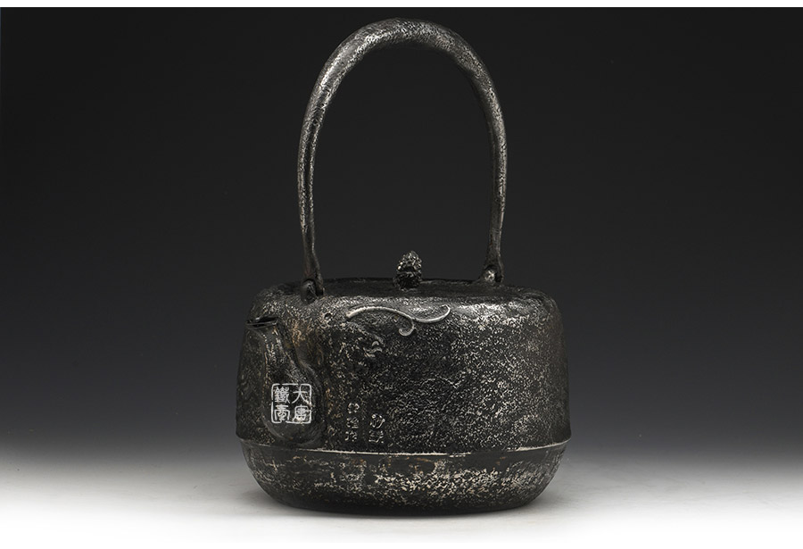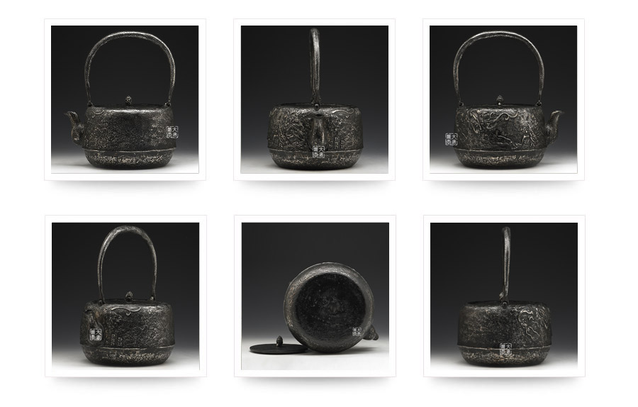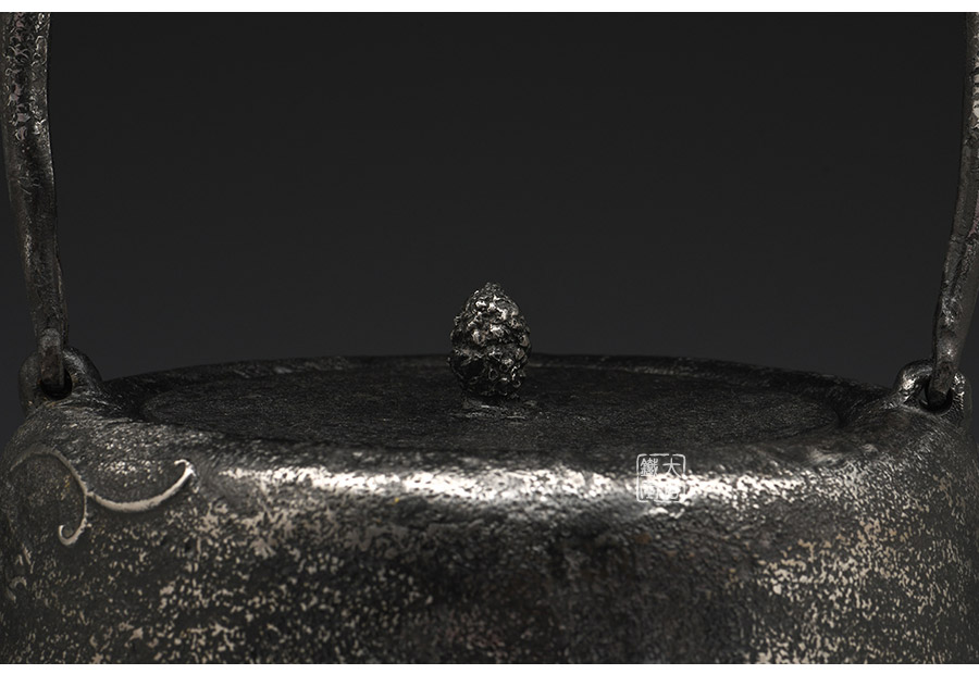 荒井工房的鐵瓶除了在鑄造工藝上有嚴格的規(guī)范和體系,在鐵瓶裝飾技術(shù)上也頗有建樹。除了傳統(tǒng)的印刻技術(shù)外,荒井工房還掌握了非常出色的金銀鑲嵌技藝,尤其以大片的鏨刻銀片最為出眾,這在山形當?shù)靥每谥歇殬湟粠谩?/p>