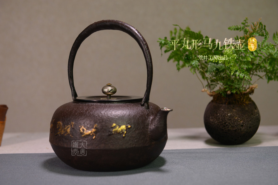 為了追求更為精致的紋理和細(xì)節(jié),當(dāng)代堂主荒井干雄孜孜不倦的將全部精力投入鐵瓶的創(chuàng)作之中,每一作品都經(jīng)由精心醞釀,純手工精心制作,不僅將荒井一家的祖?zhèn)骷妓嚢l(fā)揚(yáng)光大,同時(shí)也在鐵瓶界闖出了自己的名聲,成為當(dāng)代的釜師名家。