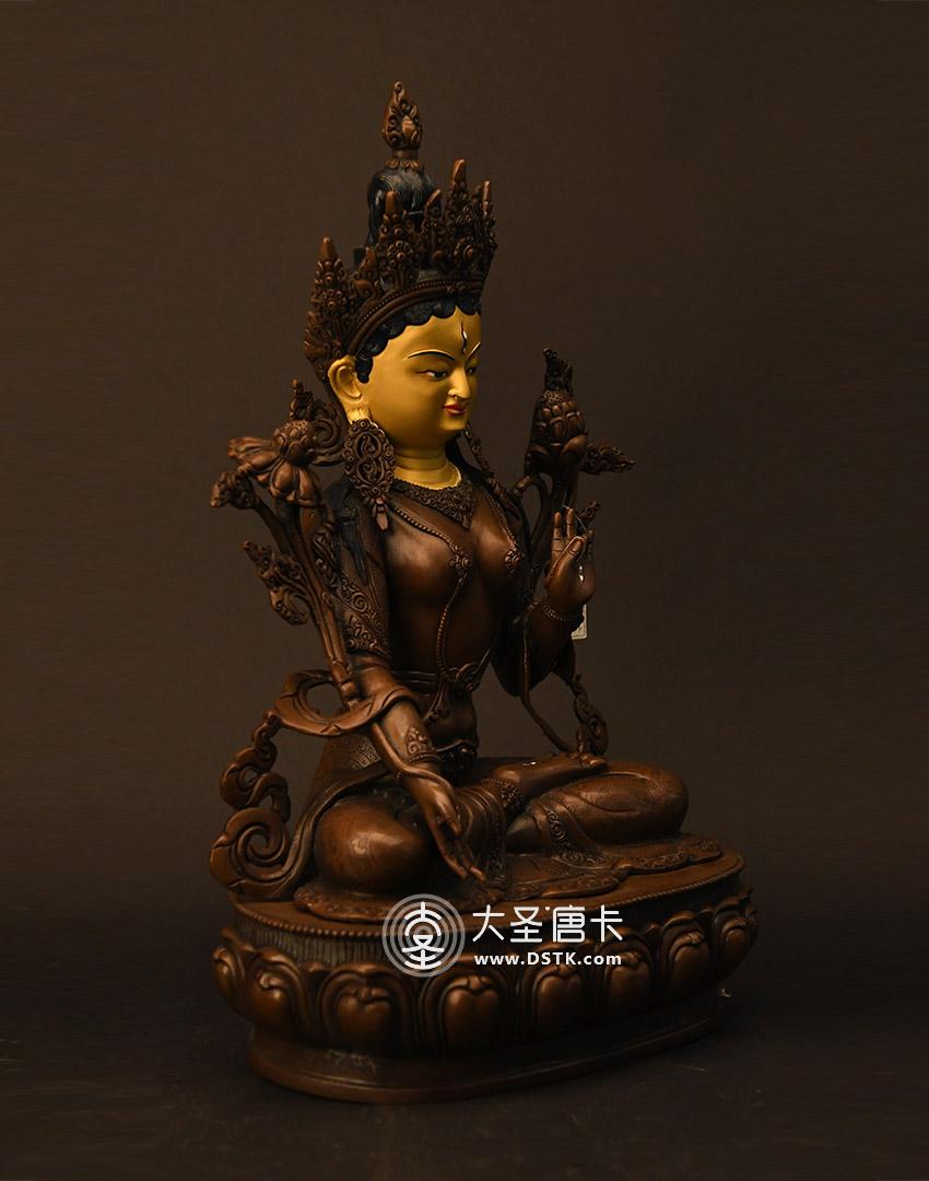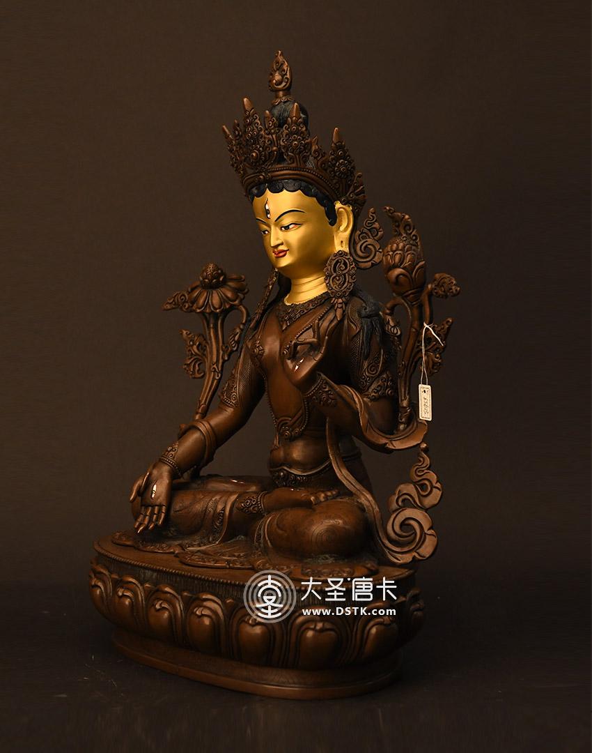 產地:尼泊爾佛像 工藝:鎏金 創作年份:2017 題材:佛母 繪制時間:0日 尺寸:50*25*38cm 重量:0 g 材質:紫銅 使用場地:
