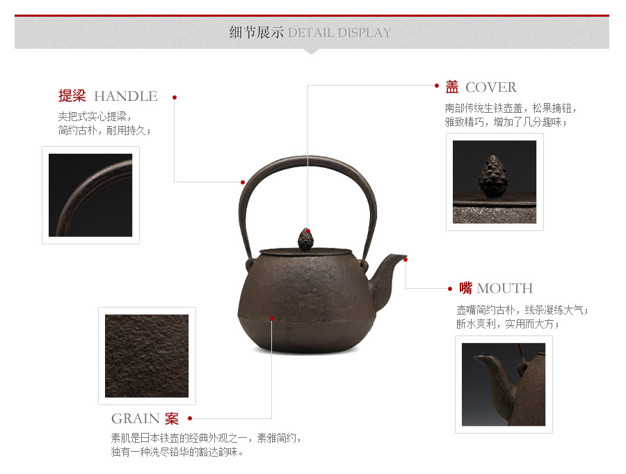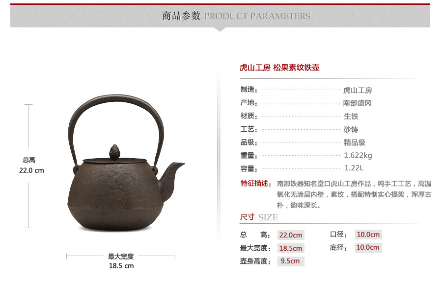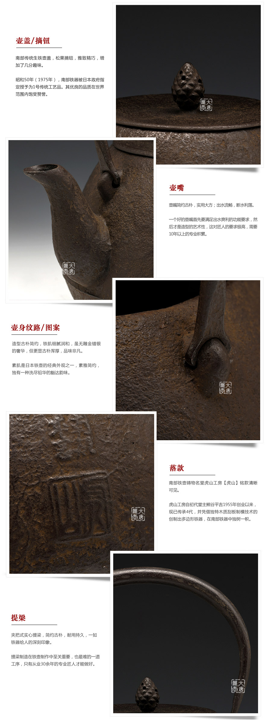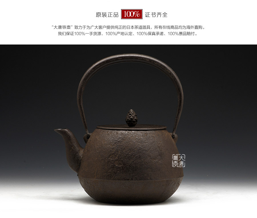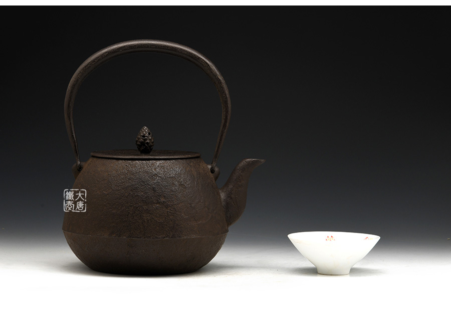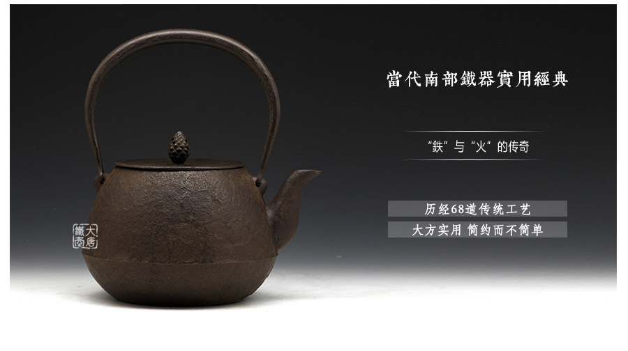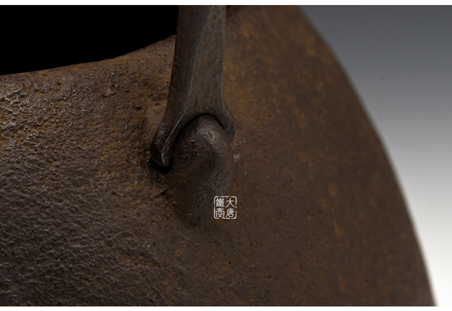 南部鐵器知名堂口虎山工房作品,純手工工藝,高溫氧化無(wú)涂層內(nèi)壁,素紋,搭配特制實(shí)心提梁,渾厚古樸,韻味深長(zhǎng)。