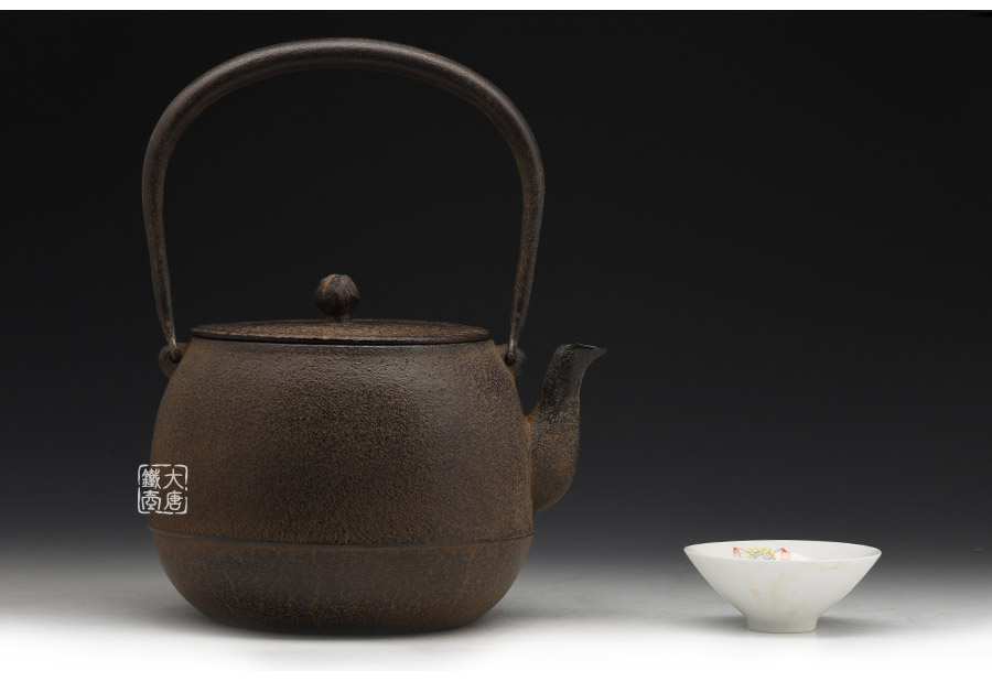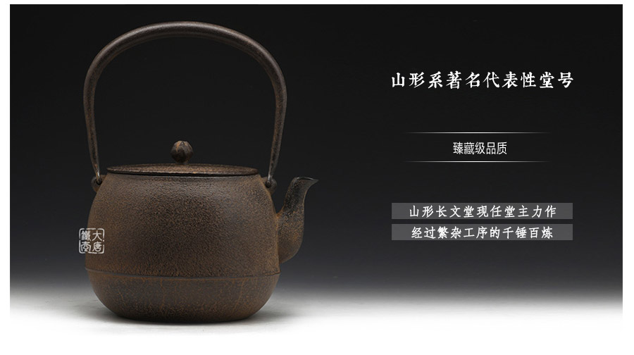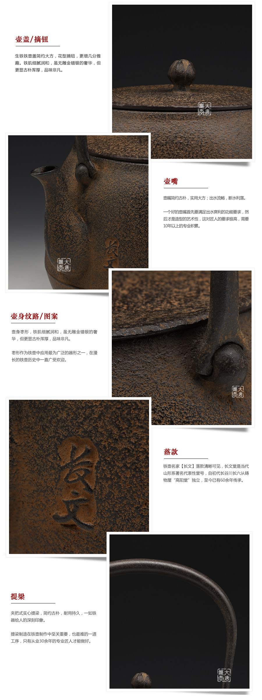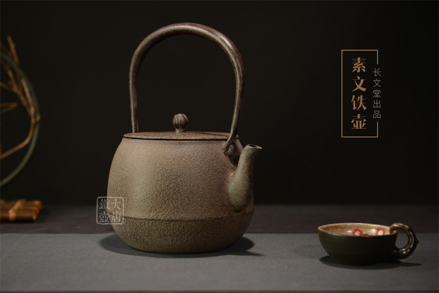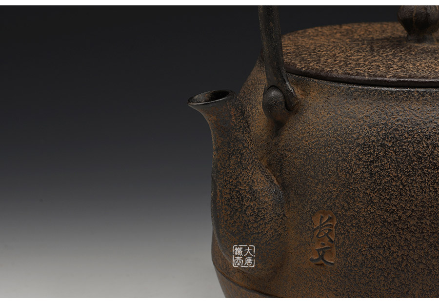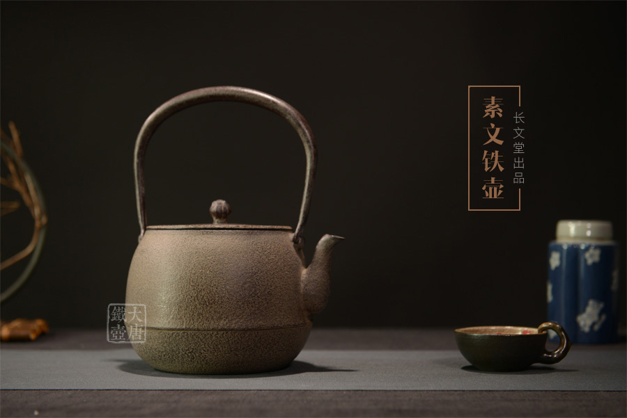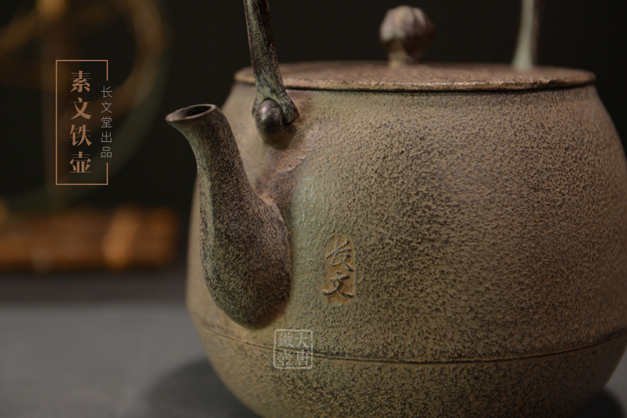 山形長(zhǎng)文堂現(xiàn)任堂主,長(zhǎng)谷川光昭作品,燒型制法,一模一具,壺身素文,素肌是日本鐵壺的經(jīng)典外觀之一,素雅簡(jiǎn)約,獨(dú)有一種洗盡鉛華的豁達(dá)韻味。
