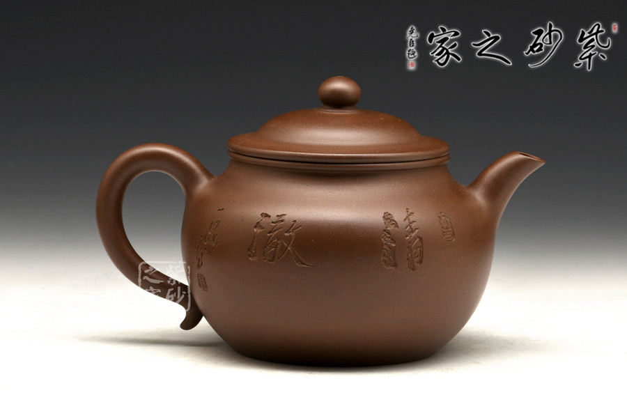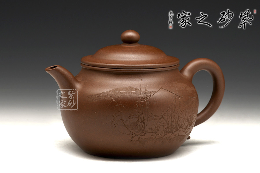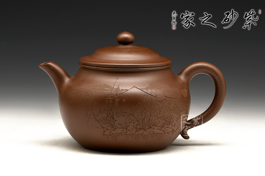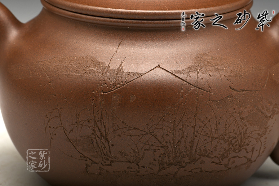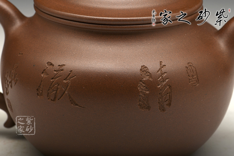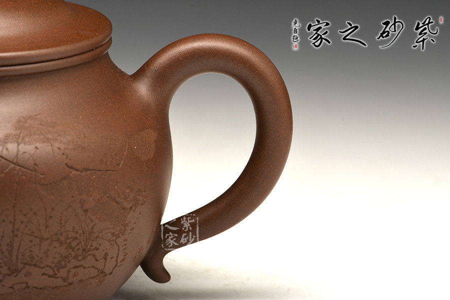 此款《芙蓉壺》是紫砂匠人徐赟的精品力作,他精于陶刻,師從陶刻大家錢一清和中國工藝美術大師曹亞麟,水陸草木之花,可愛者甚蕃,晉陶淵明獨愛菊,自李唐來世人盛愛牡丹,予獨愛蓮之出淤泥而不染,濯清漣而不妖,中通外直,不蔓不枝,香遠益清,亭亭凈植,可遠觀而不可褻玩焉!