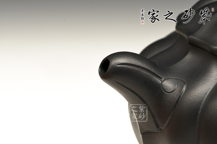 此壺端莊大氣,飽滿大度的壺體,給人以有容乃大的大家風(fēng)范和氣度。此壺剛中帶柔、雍容大方、規(guī)矩挺括、光潤和洽??谏w接縫嚴(yán)密。壺身飽滿而有力度。壺嘴俊朗,靈動的變化中透露了剛毅,壺把過渡順暢優(yōu)美,走勢一氣呵成,非常精致。壺身、蓋、頸、腹、鈕上錯落有致,骨肉亭勻,壺的口沿與壺蓋截成一條圓線,口蓋各占一半,此款如意壺達到了經(jīng)典水平,是愛壺的人士不可多得之物。