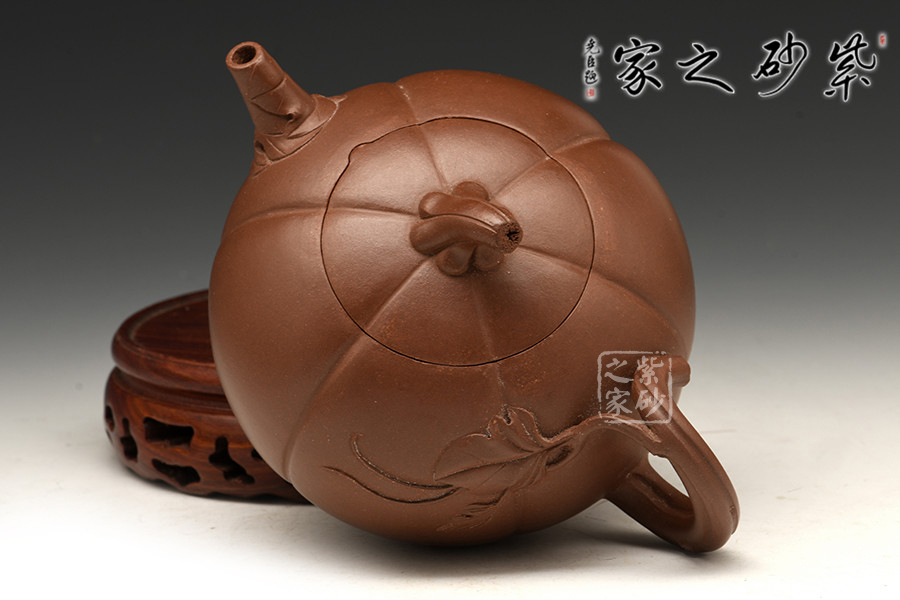 作品整個形態(tài)是一只完整的南瓜,壺身飽滿,肩小底大,足見豐碩之姿,雖然重心因此下沉,但卻顯得厚而不重,趣味自然。