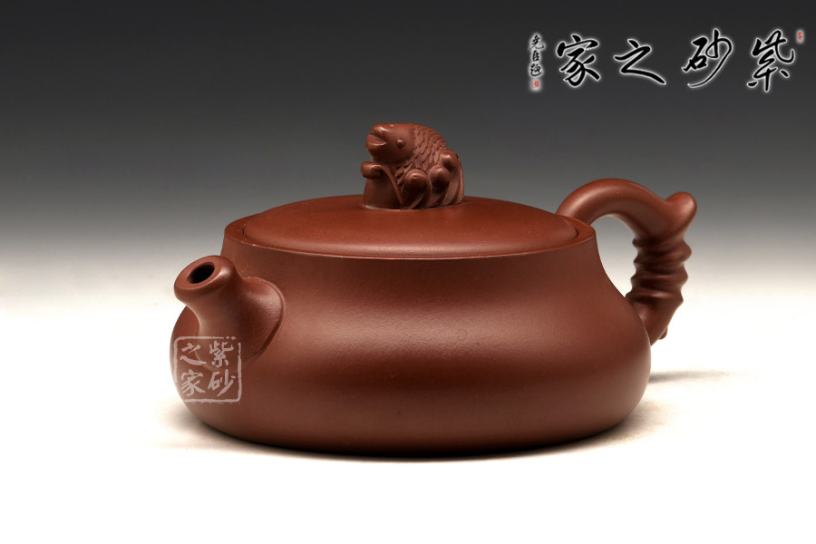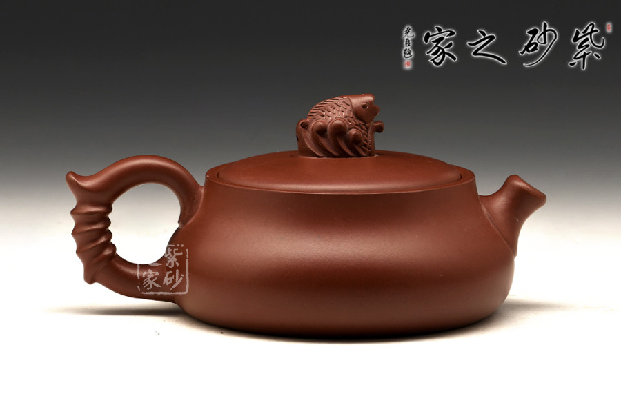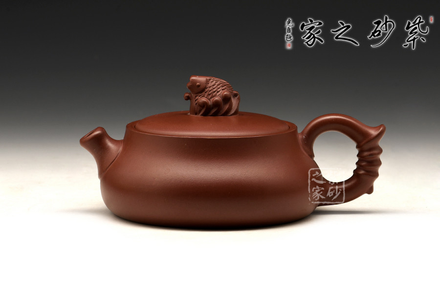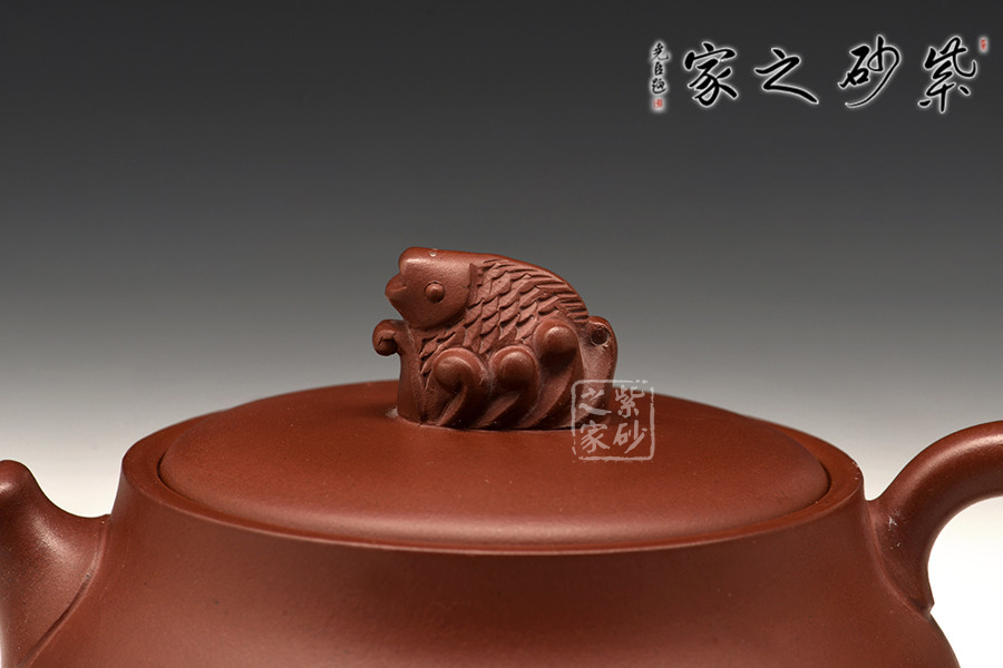 壺鈕呈一只臥魚形狀,似將擺尾跳躍,積極向上有活力,因此這款壺稱為“時來運轉(zhuǎn)”壺實在是貼切至極。