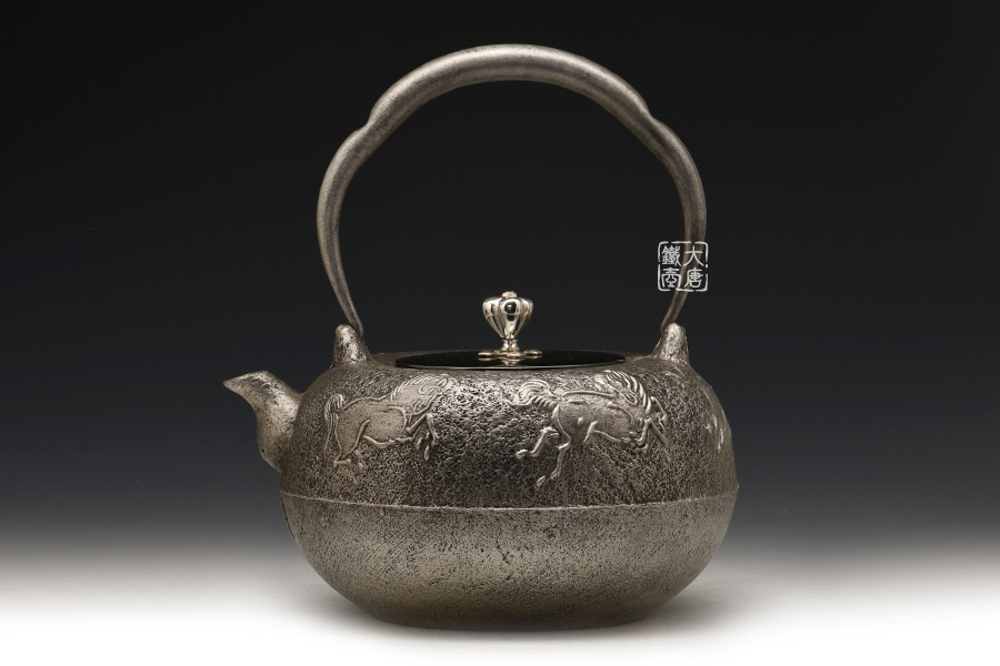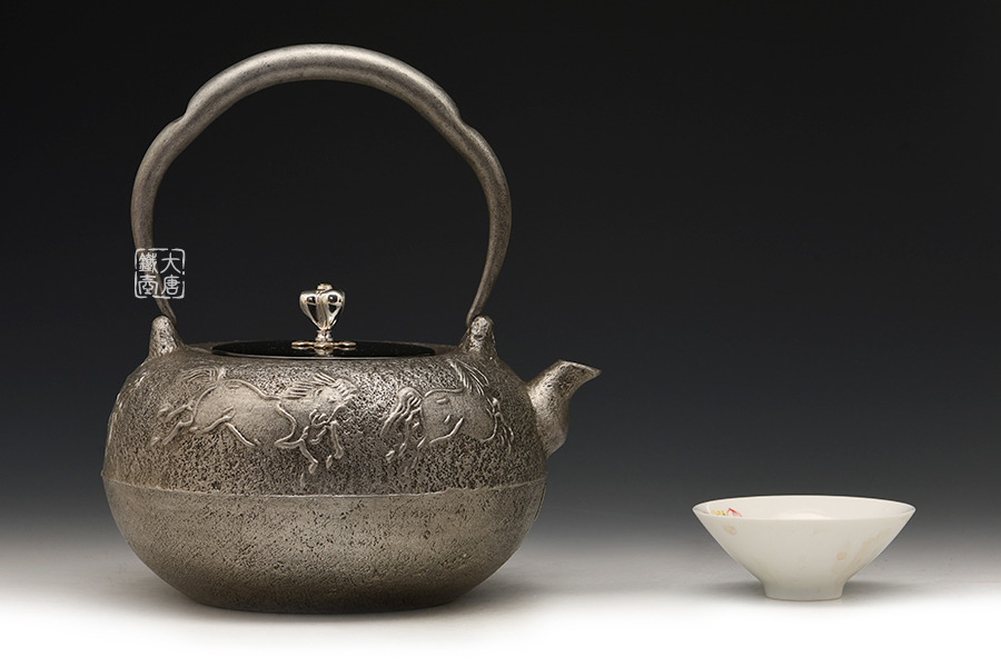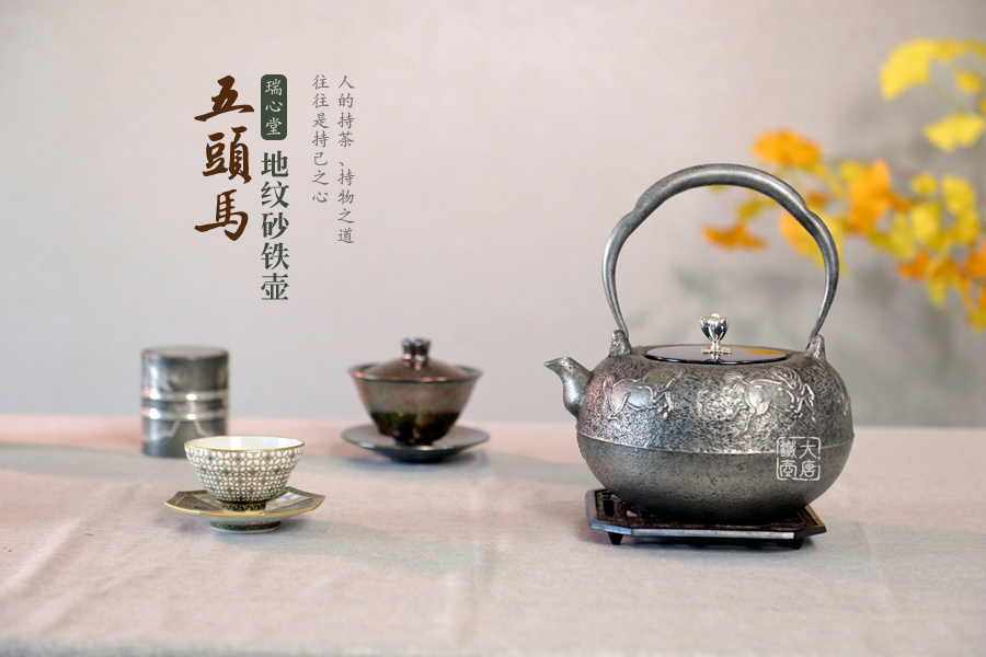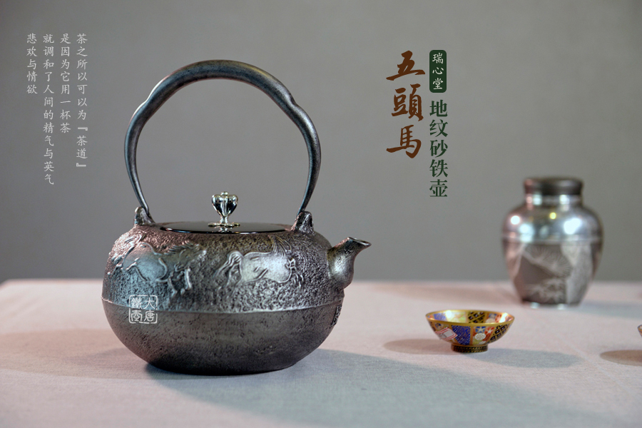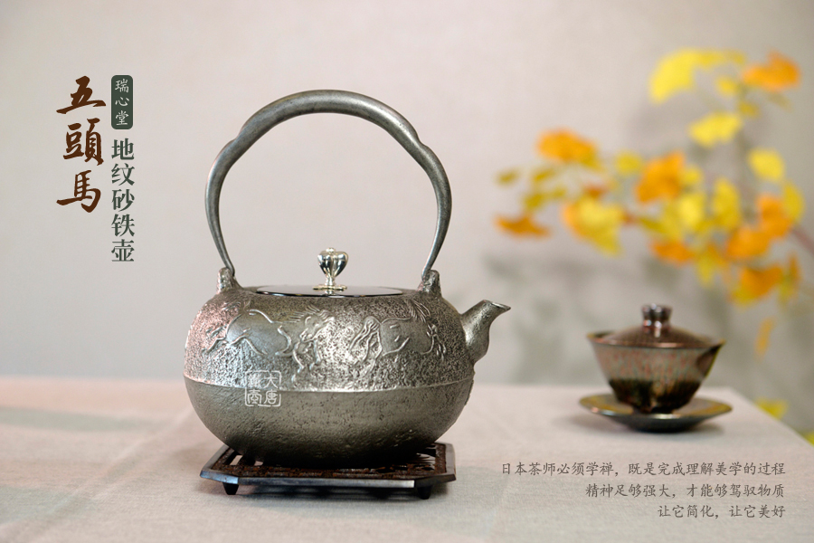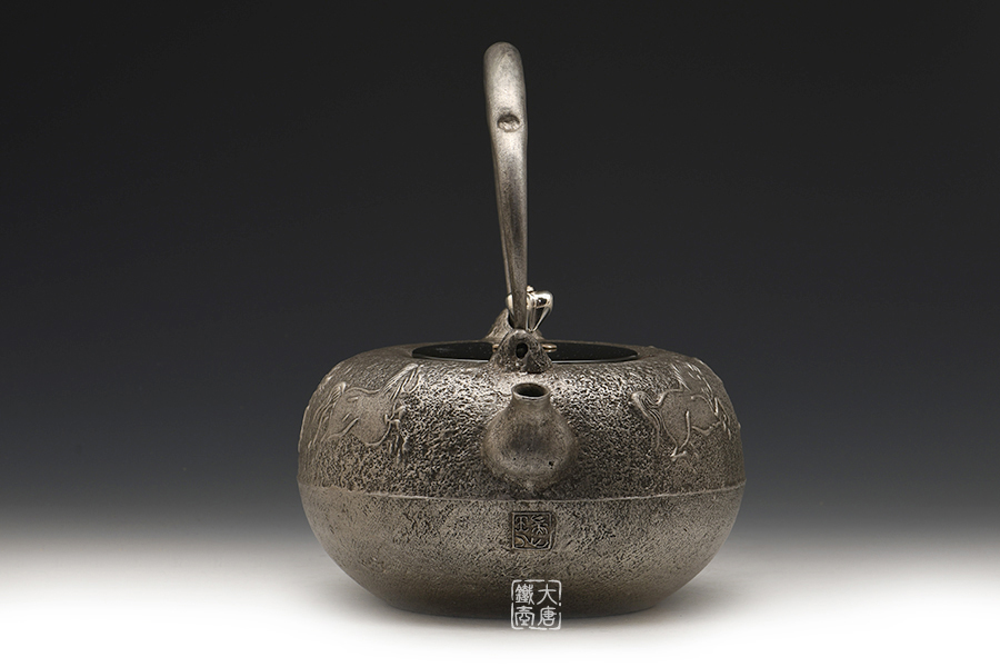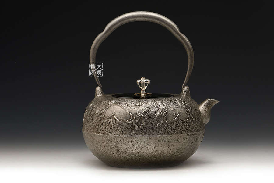 瑞心堂 五頭馬地紋砂鐵壺 [ 編號:65952 ]