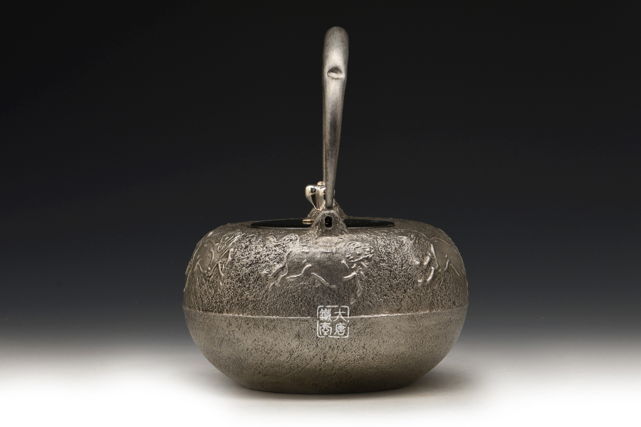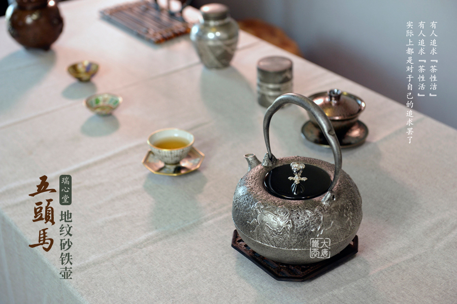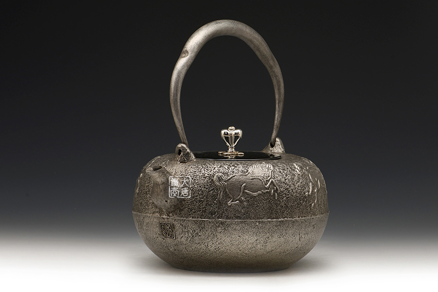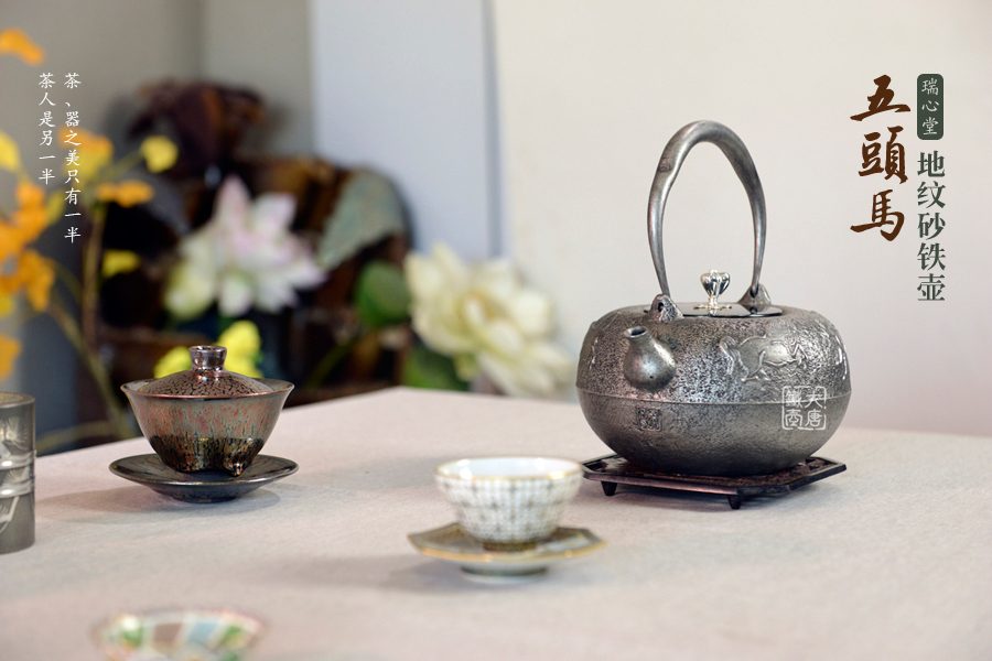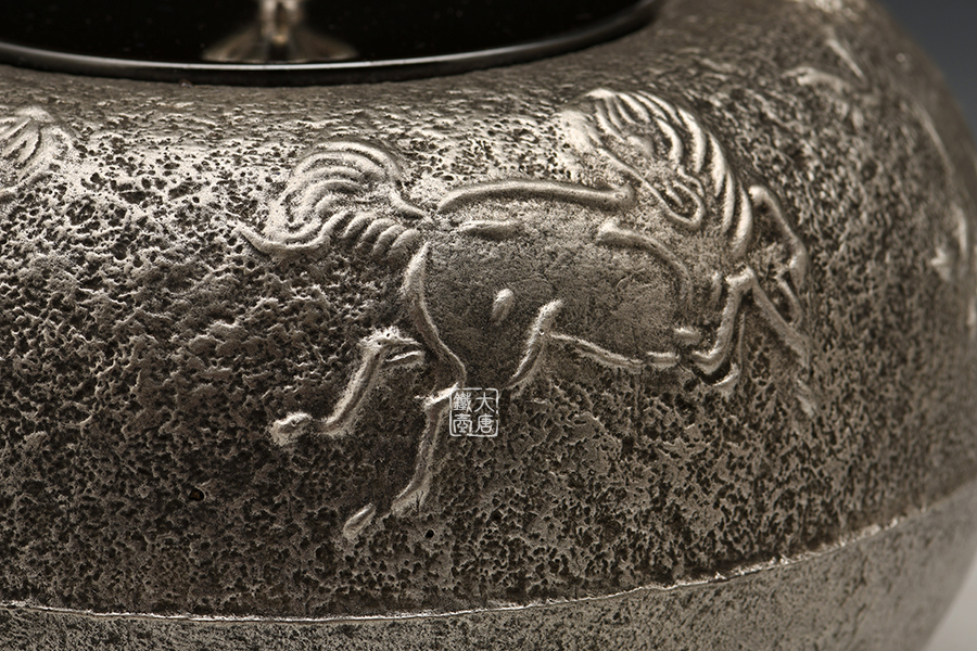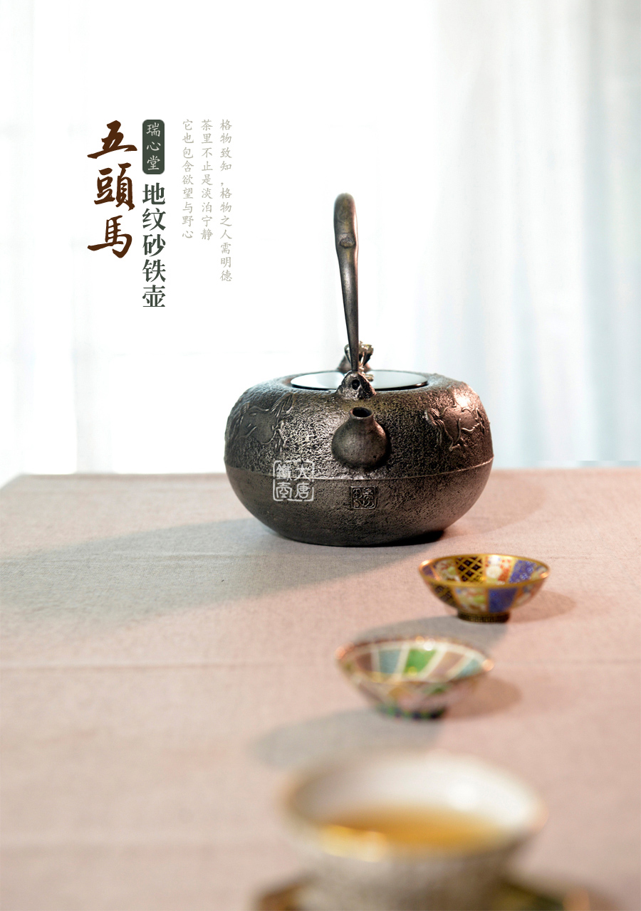 瑞心堂 五頭馬地紋砂鐵壺 [ 編號:65952 ]