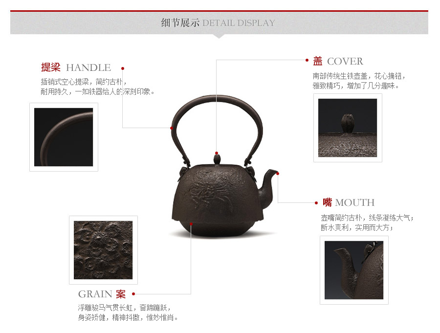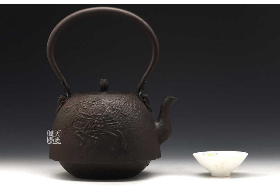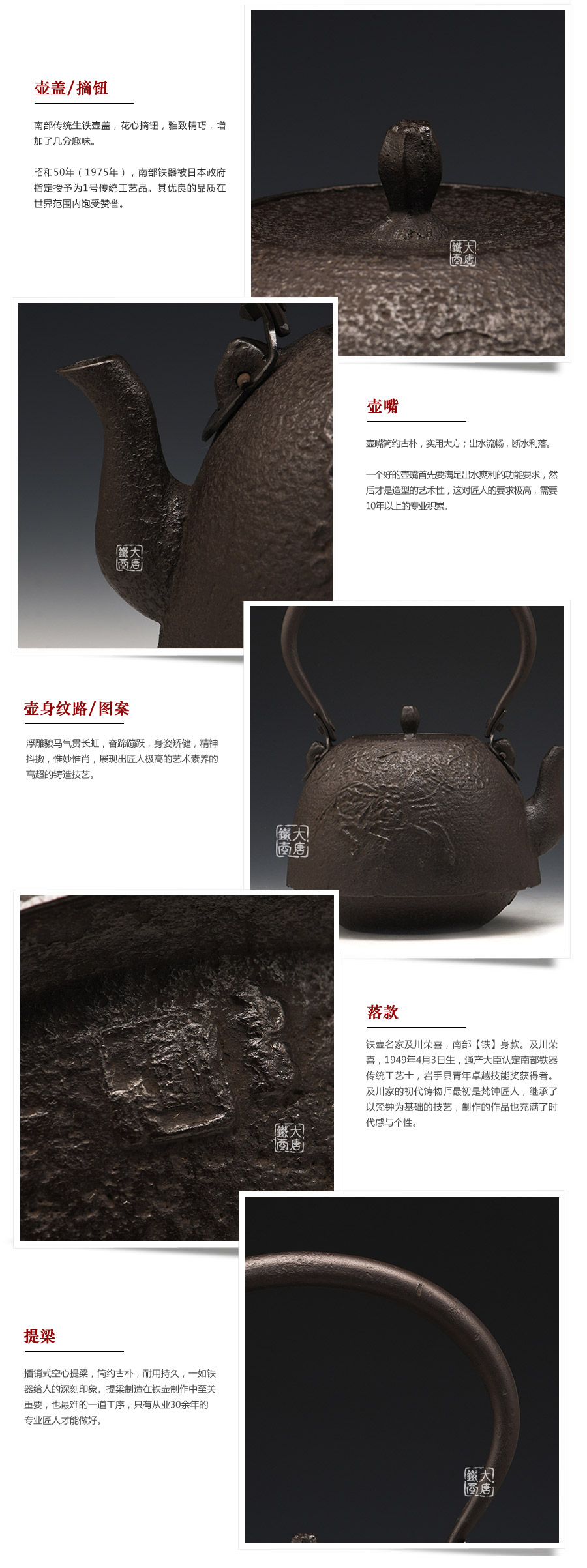 及川榮喜匠心手作,浮雕駿馬氣貫長虹,奮蹄蹦躍,身姿矯健,精神抖擻,惟妙惟肖,展現(xiàn)出匠人極高的藝術(shù)素養(yǎng)的高超的鑄造技藝。