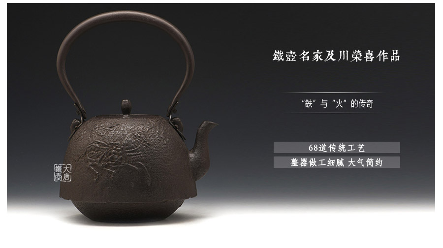 及川榮喜,寶鐵堂二代目,1949年4月3日生,通產(chǎn)大臣認(rèn)定南部鐵器傳統(tǒng)工藝士,巖手縣青年卓越技能獎獲得者。及川家的初代鑄物師最初是梵鐘匠人,繼承了以梵鐘為基礎(chǔ)的技藝,制作的作品也充滿了時代感與個性。寶鐵堂的鐵瓶、茶釜全部采用了酸化膜技術(shù)防銹工藝。