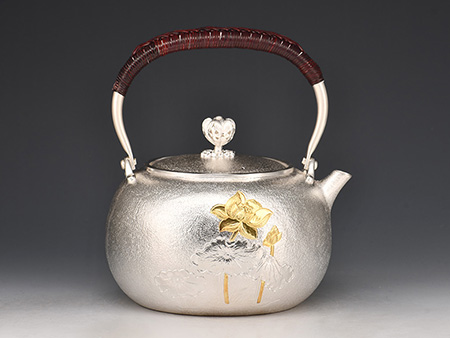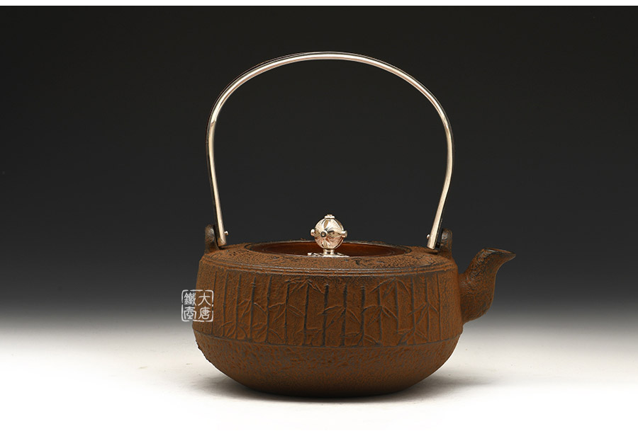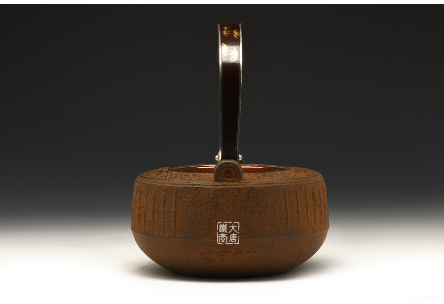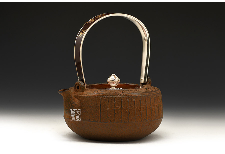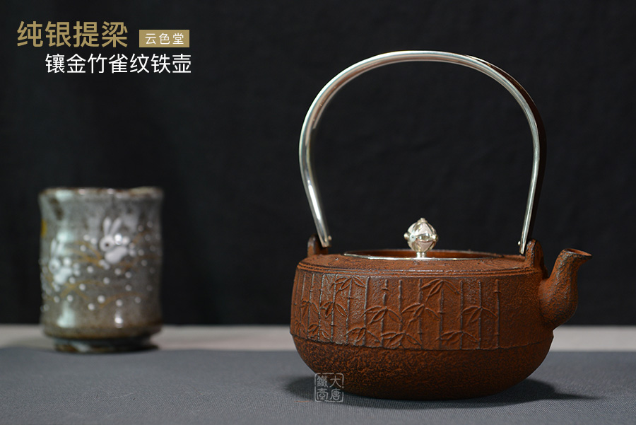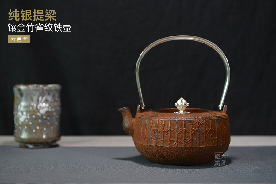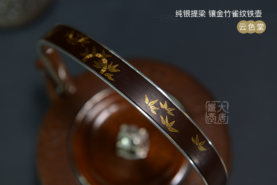 云色堂 純銀提梁鑲金竹雀紋鐵壺 [ 編號:66017 ]